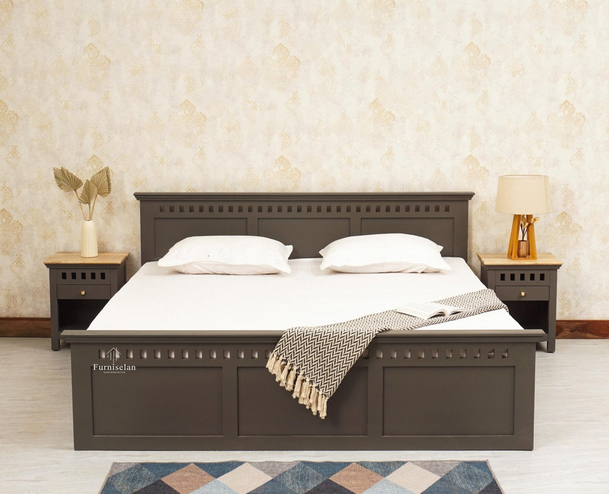Generic Name: Alexandria Solid Wood King Size Bed with Storage Box