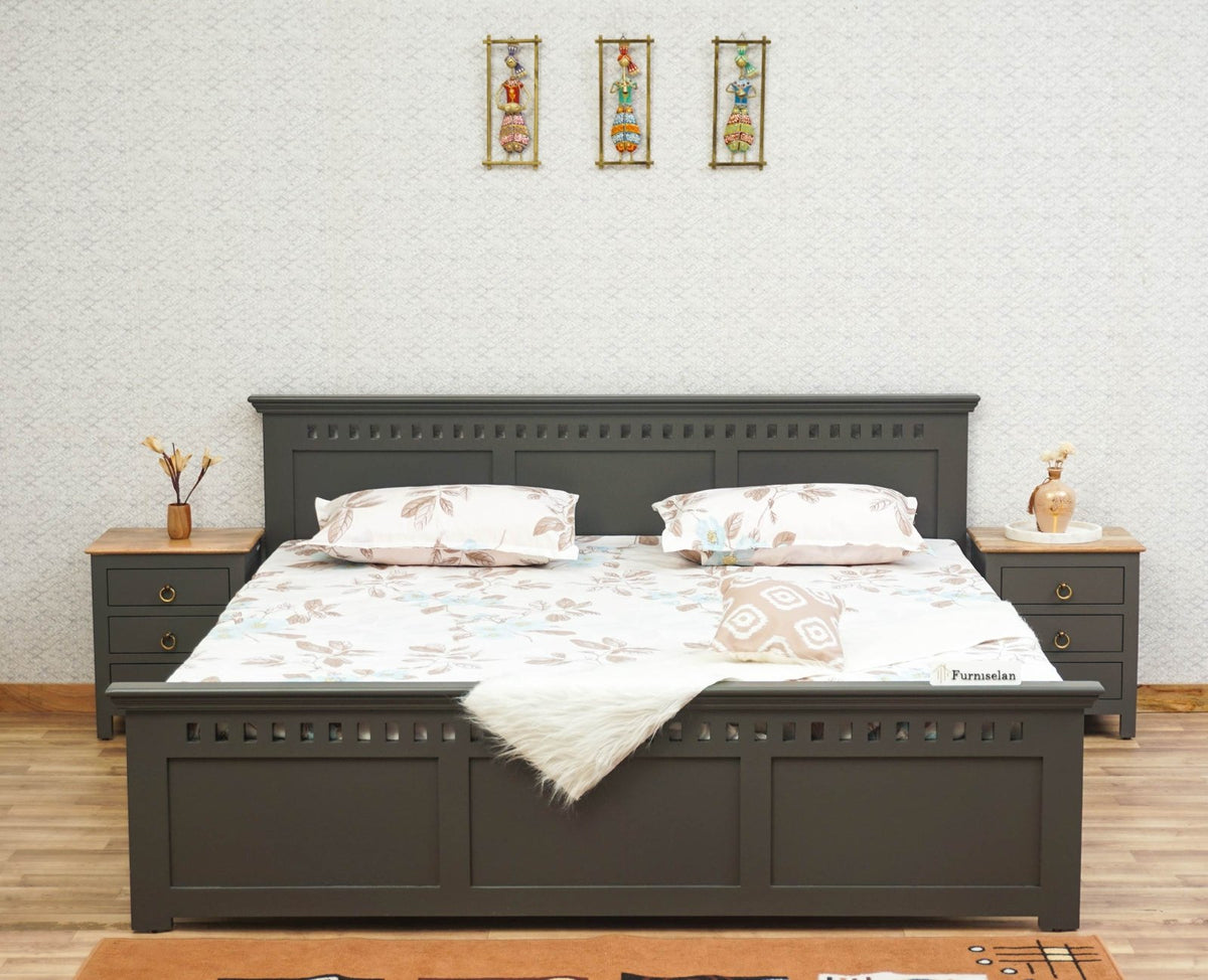 • Alexandria Solid Wood King Size Bed with Storage Drawer - Furniselan Silt-GreenFurniselan King with Storage ₹ 35,999.00