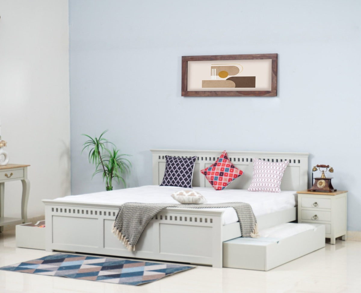 Material: Primary - Mango Wood, Secondary - MDF used at bottom of the mattress & Drawer Bottom