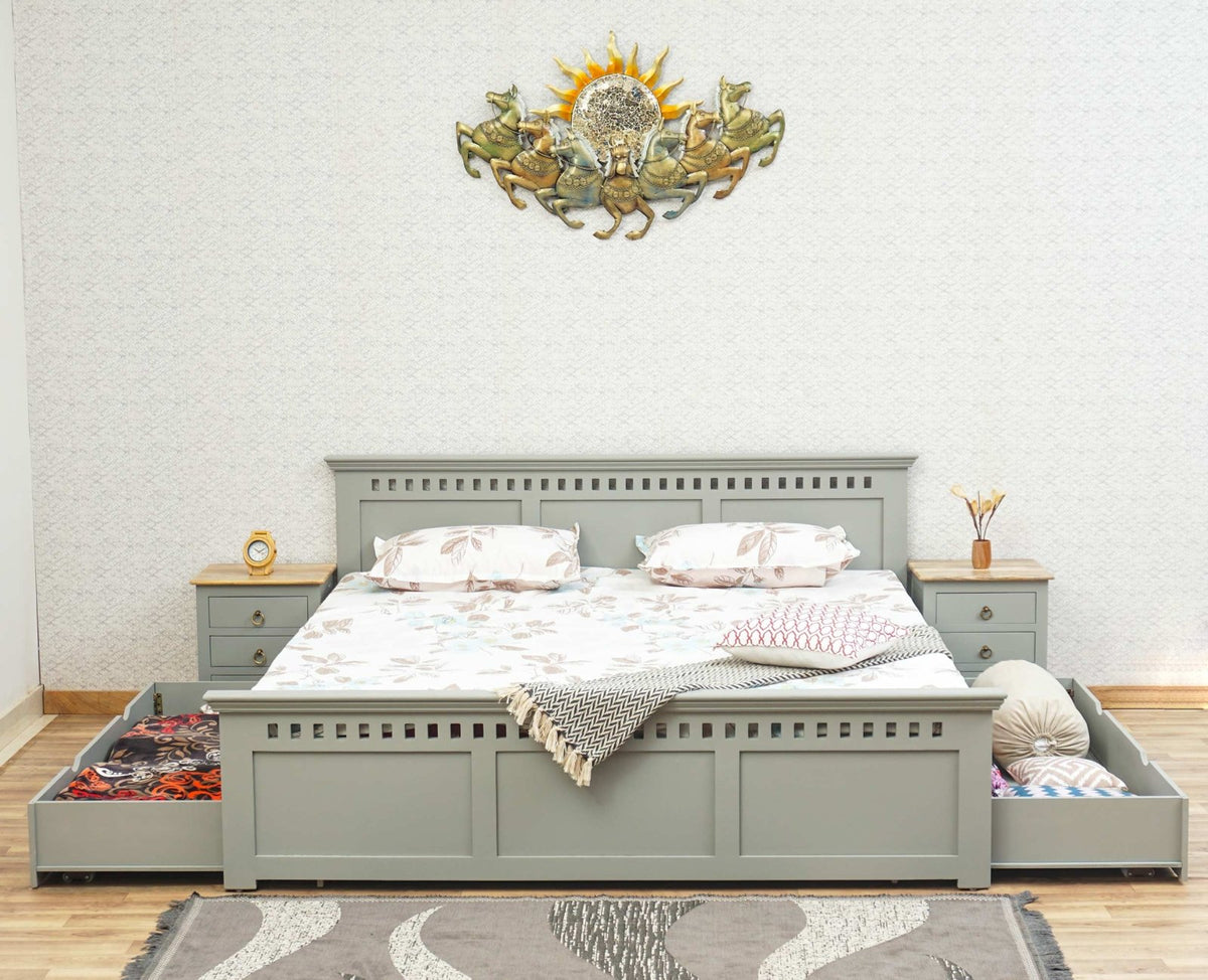 • Alexandria Solid Wood King Size Bed with Storage Drawer - Furniselan Silt-GreenFurniselan King with Storage ₹ 35,999.00