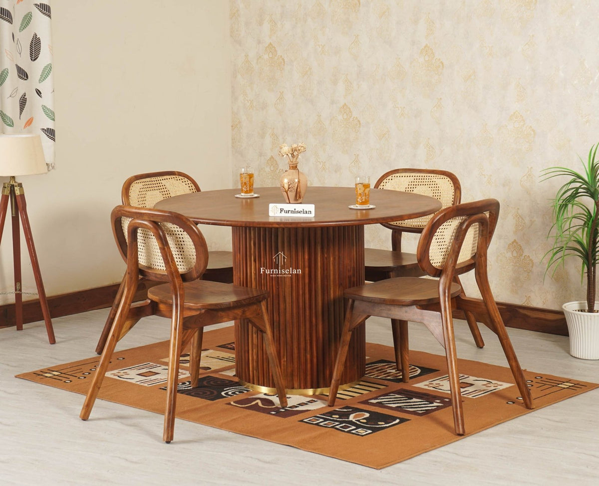 Generic Name: Antilia Solid Wood Four Seater Round Dining Set with Four Chairs