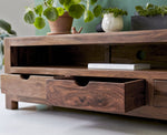 The Austin Four Drawer TV Table provides secure storage and organization for your media essentials. With four spacious drawers, this table offers ample space to keep your DVDs, cables, and...