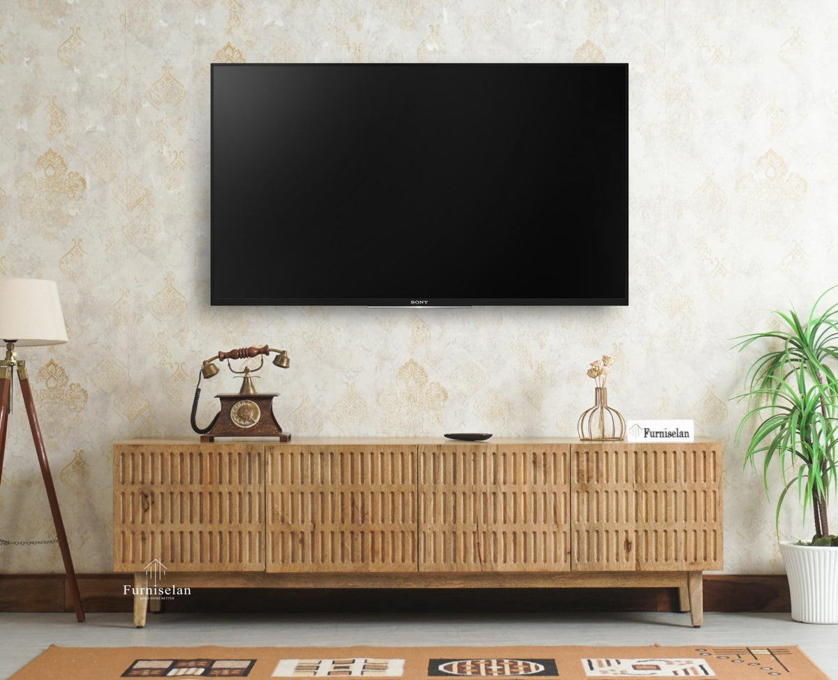 Austria Premium Edition Solid Wood Four-Door TV Cabinet is a perfect solid wood Tv Cabinet. Use of Mango Wood as primary material gives this Tv Cabinet a solid & sturdy look. Secondary material is used as MDF is used at Backside. We offer free country-wide shipping and free installation service. The wood used in the furniture is perfectly seasoned for optimum moisture content, to reduce the possibility of seasonal expansion or contraction of the products.
