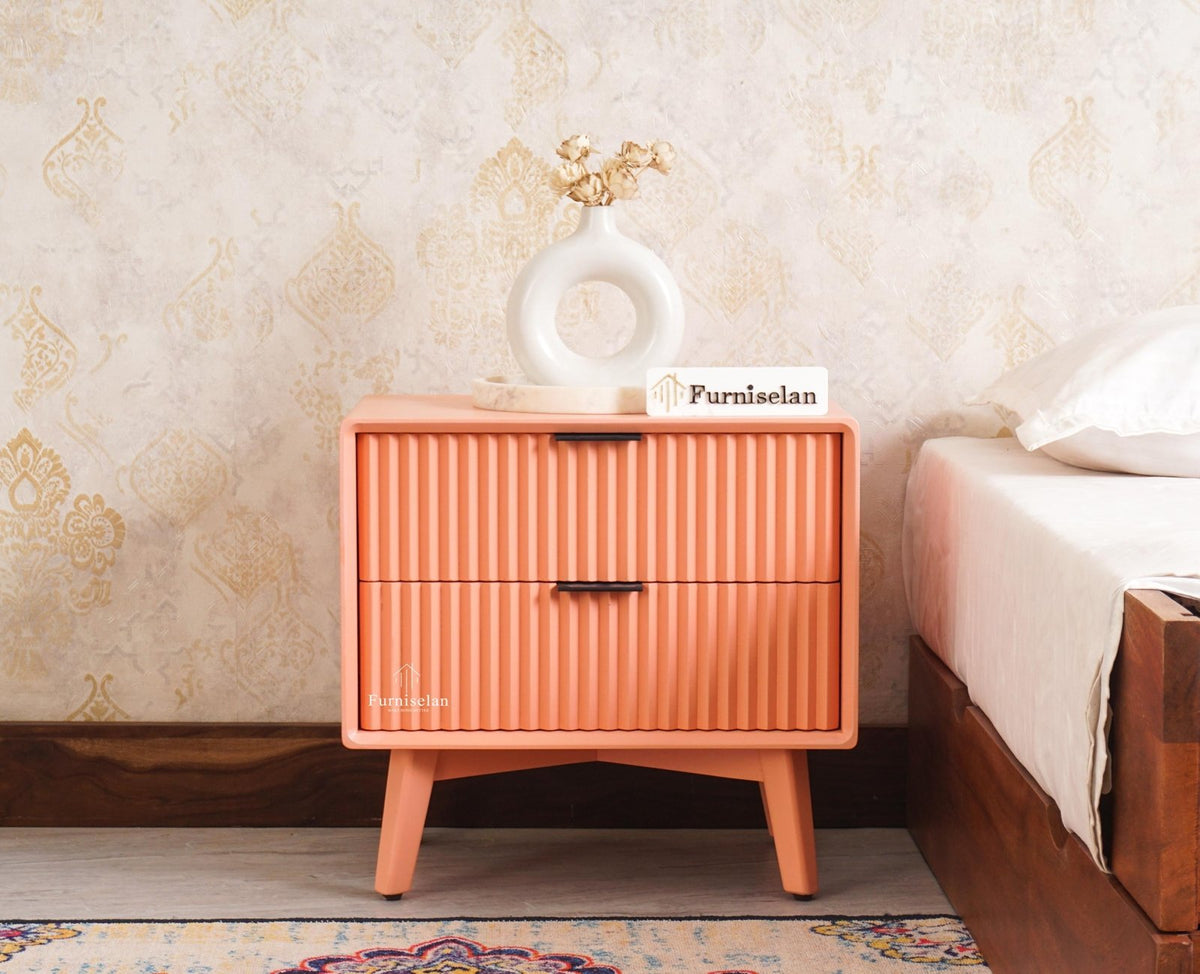 Bengaluru Solid Wood Bedside Table - (Coral Peach)