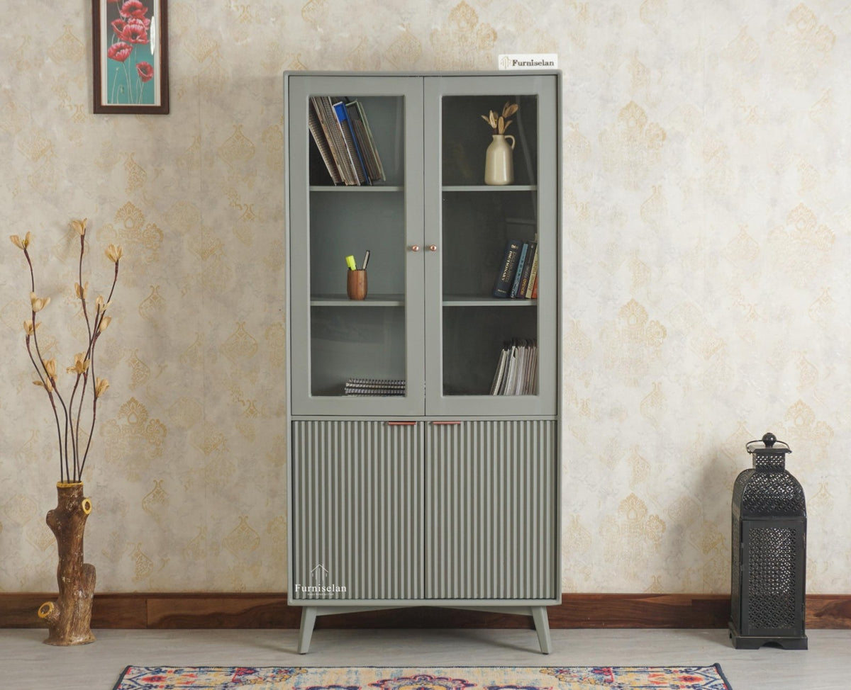 Storage: Bengaluru Solid Wood Bookshelf Cabinet four Doors comes with Two Doors storage option.