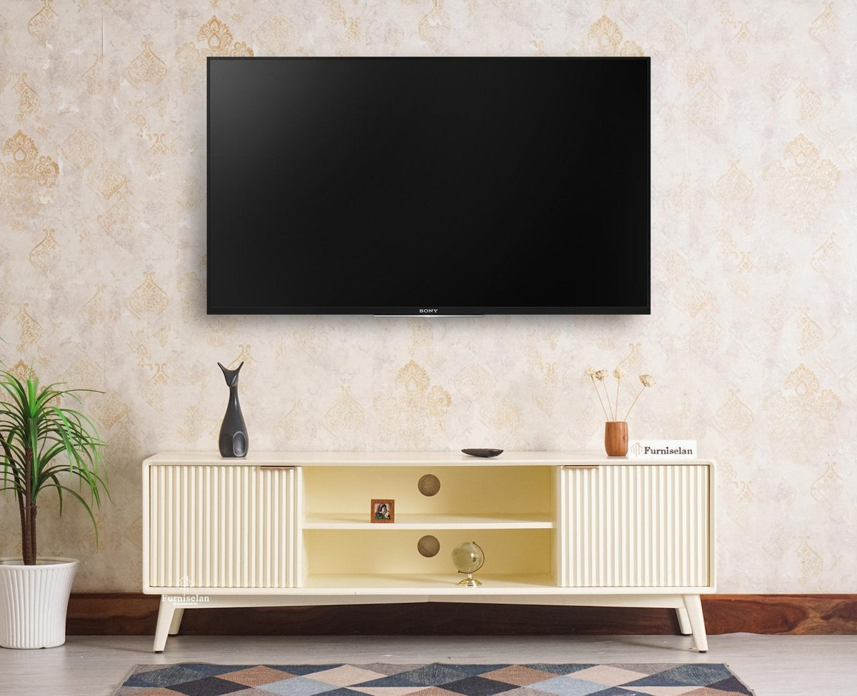 Bengaluru Solid Wood TV Cabinet Two Door - (Milky White)