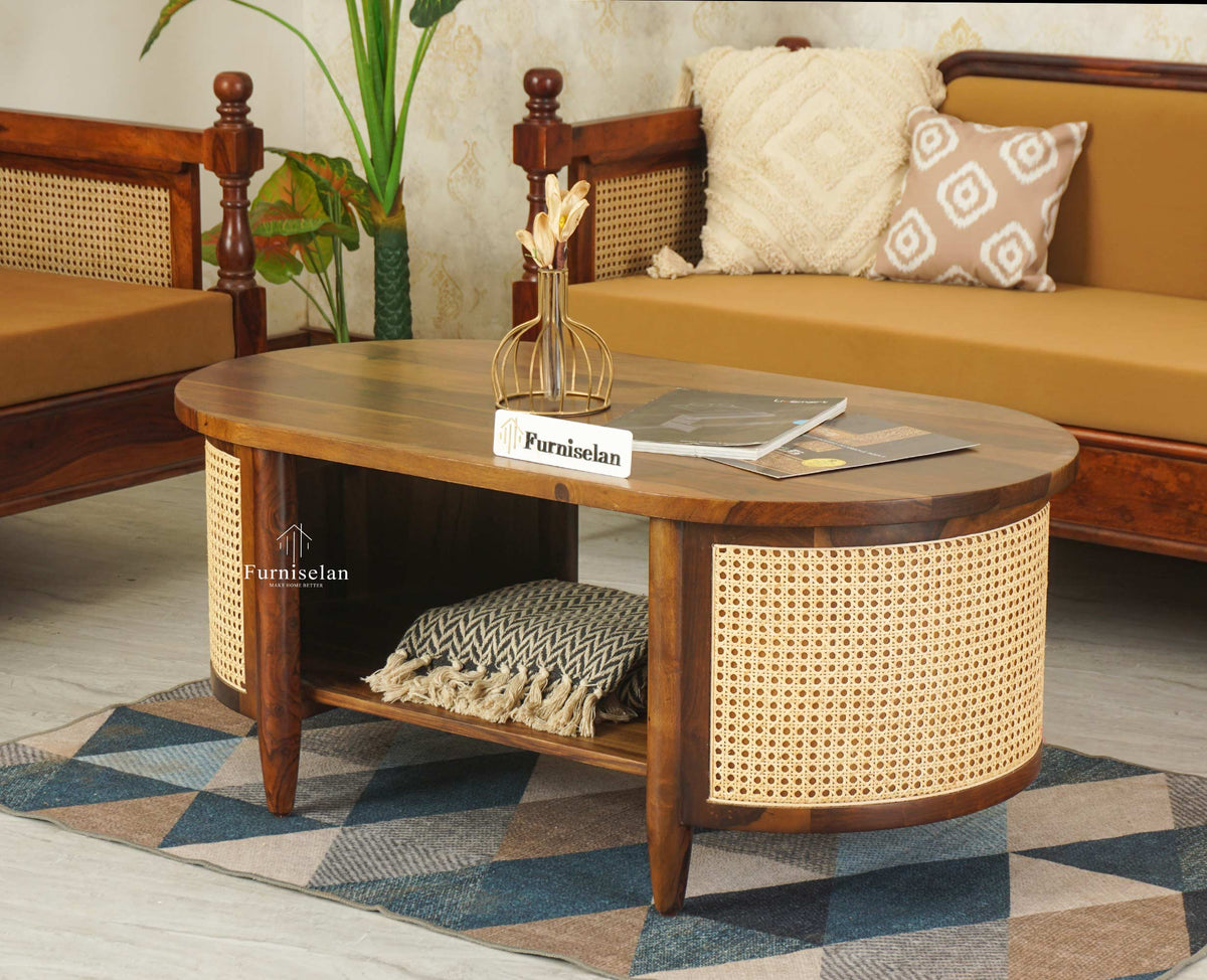 Boston Sheesham Wood Oval Coffee Table is a perfect solid wood Coffee Table. Use of Sheesham Wood as primary material gives this Coffee Table a solid & sturdy look. Secondary material is used as Rattan Cane used. We offer free country-wide shipping and free installation service. The wood used in the furniture is perfectly seasoned for optimum moisture content, to reduce the possibility of seasonal expansion or contraction of the products.
