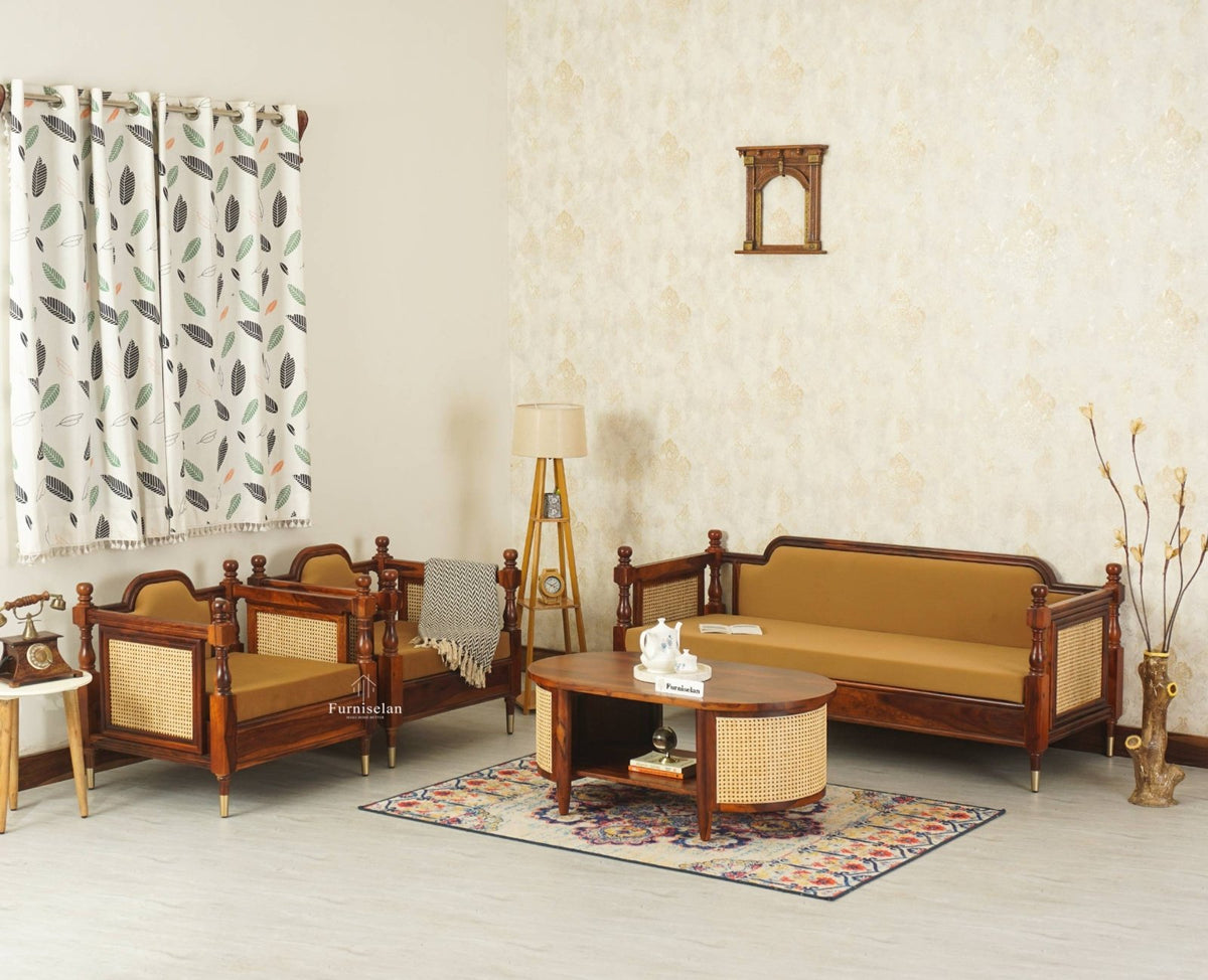 Boston Sheesham Wood Sofa Set Five Seater with Coffee Table is a perfect solid wood . Use of Sheesham Wood as primary material gives this a solid & sturdy look. Secondary material is used as Fabrics, MDF, and Rattan Cane. We offer free country-wide shipping and free installation service. The wood used in the furniture is perfectly seasoned for optimum moisture content, to reduce the possibility of seasonal expansion or contraction of the products.