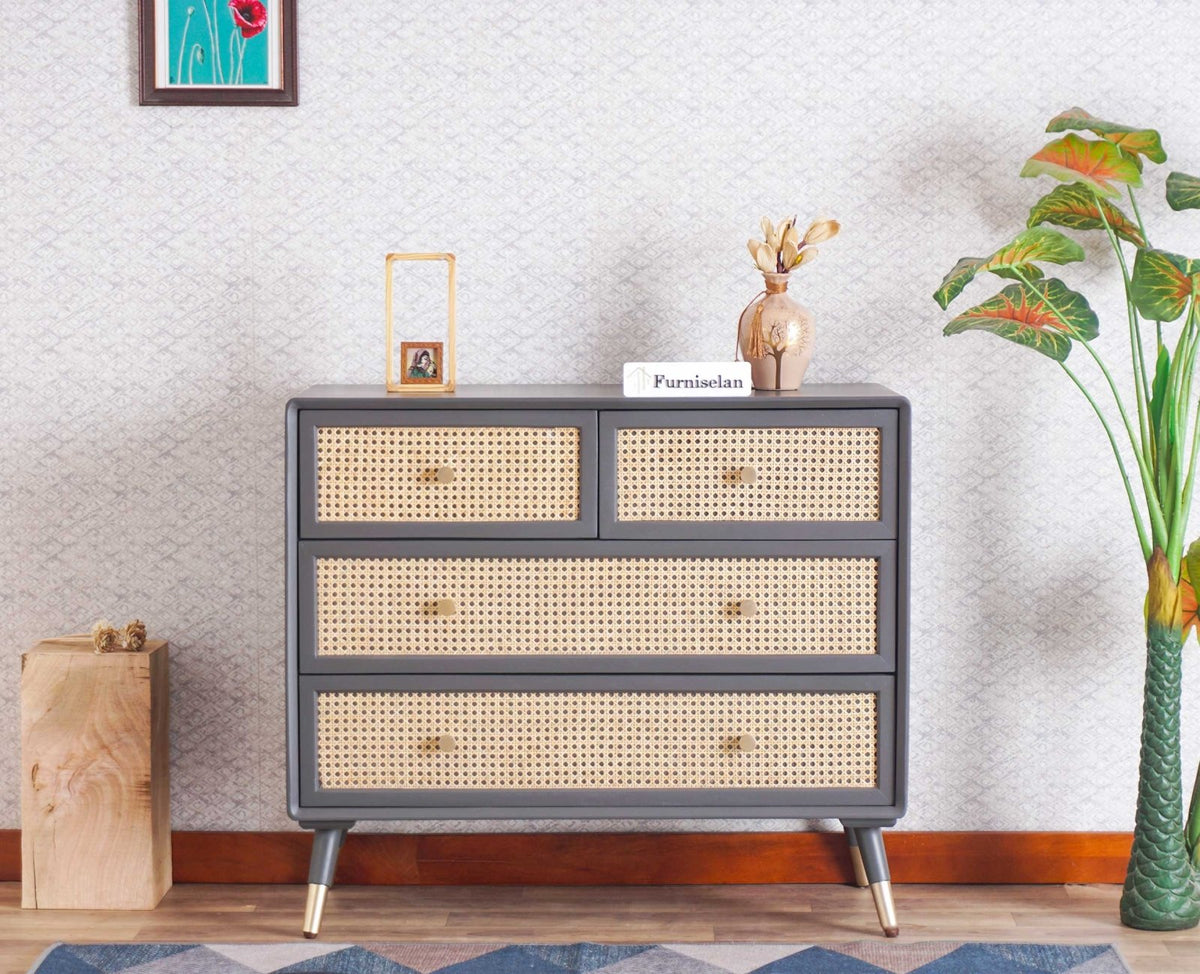 Boston Solid Wood Rattan Cane Chest of Drawer Four Drawer Codewiser Infotech