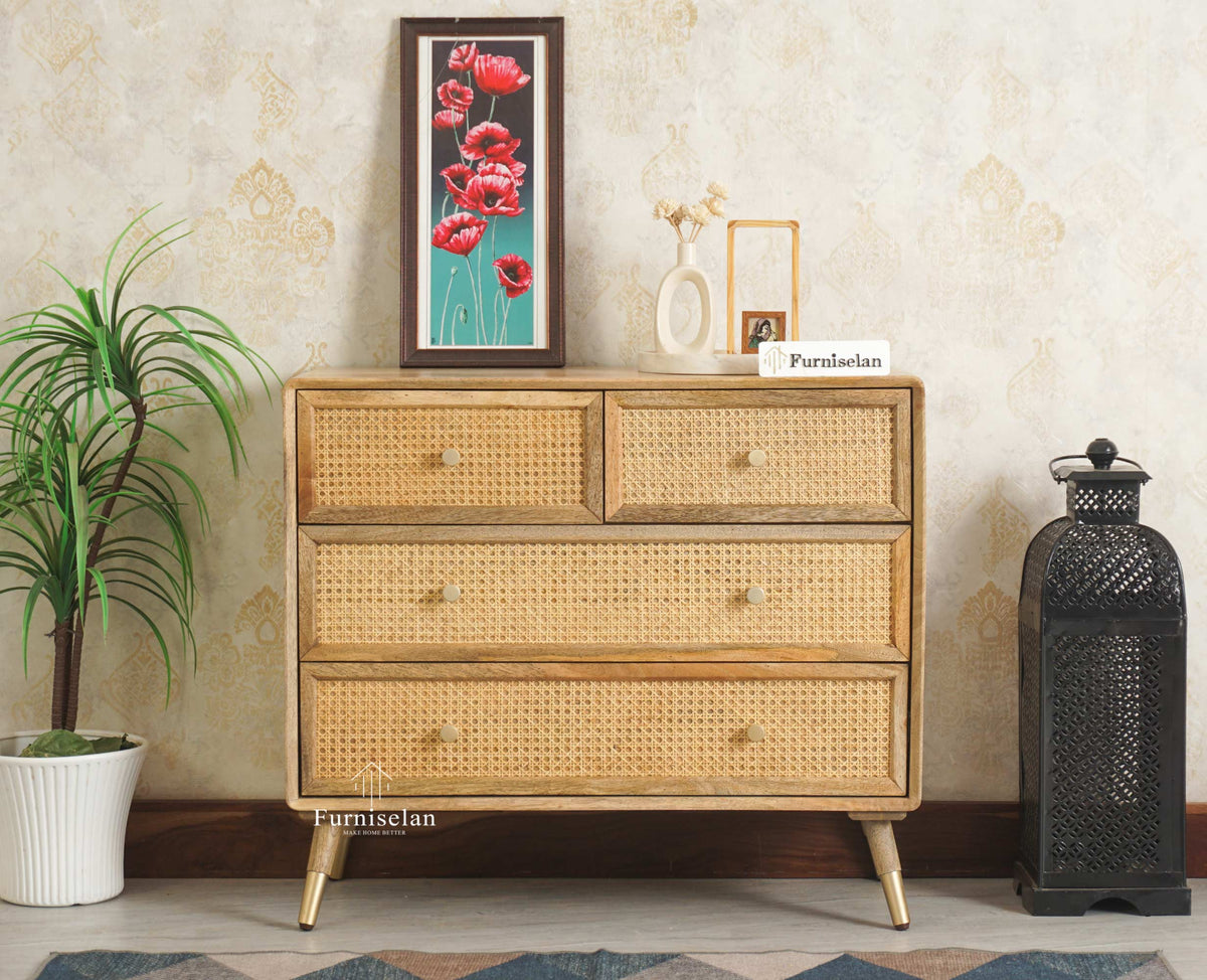 Storage: Boston Solid Wood Rattan Cane Chest of Drawer Four Drawer comes with Four Drawer storage option.