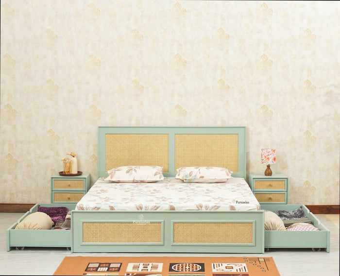 The Boston Solid Wood Rattan Cane King Size bed with storage drawers expertly blends robust solid wood construction with elegant rattan cane accents. Designed for durability and style, this bed...
