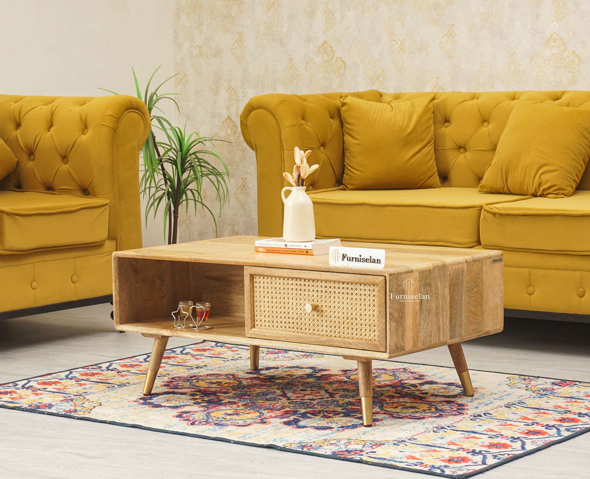 Boston Solid Wood Rattan Cane One Drawer Coffee Table is a perfect solid wood Coffee Table. Use of Mango Wood as primary material gives this Coffee Table a solid & sturdy look. Secondary material is used as Rattan Cane/MDF is used in the Drawer Bottom. We offer free country-wide shipping and free installation service. The wood used in the furniture is perfectly seasoned for optimum moisture content, to reduce the possibility of seasonal expansion or contraction of the products.