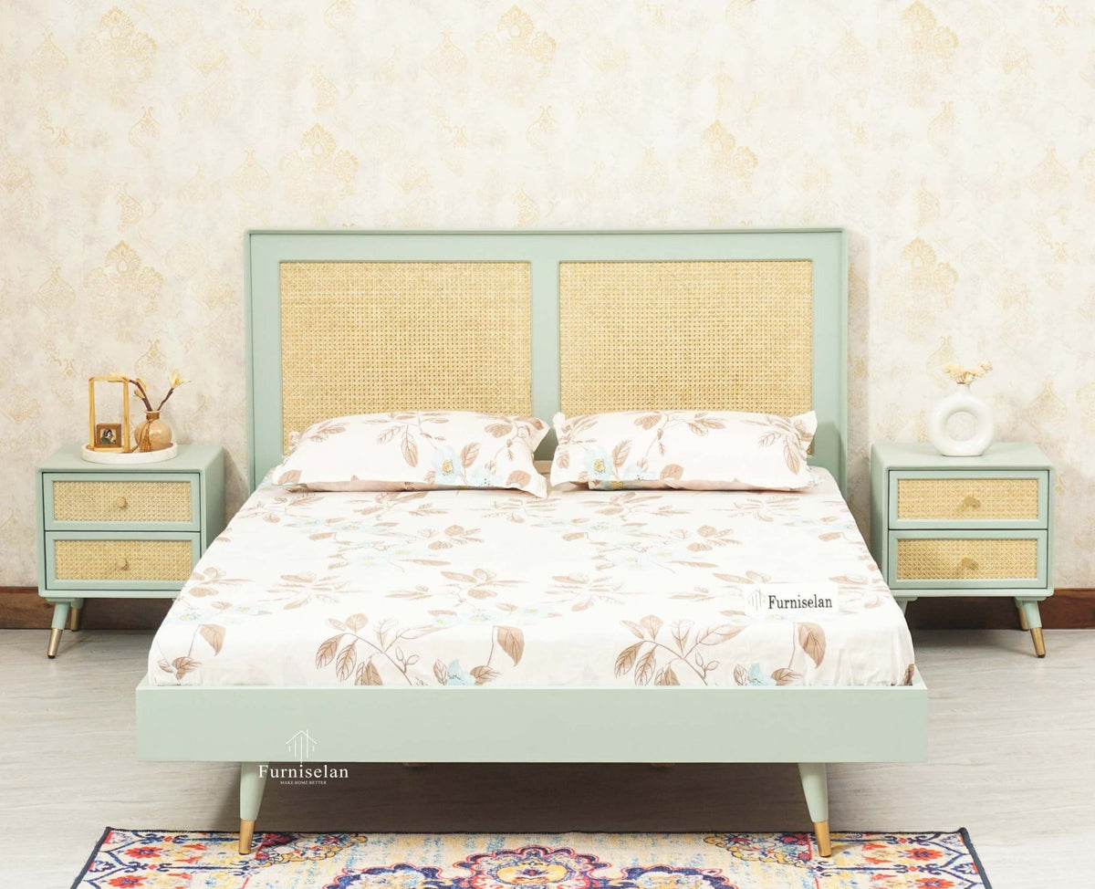 • Boston Solid Wood Rattan Cane King Size Bed - King Size Bed - Furniselan  Silt-GreenFurniselan Queen Bed ₹ 47,999.00