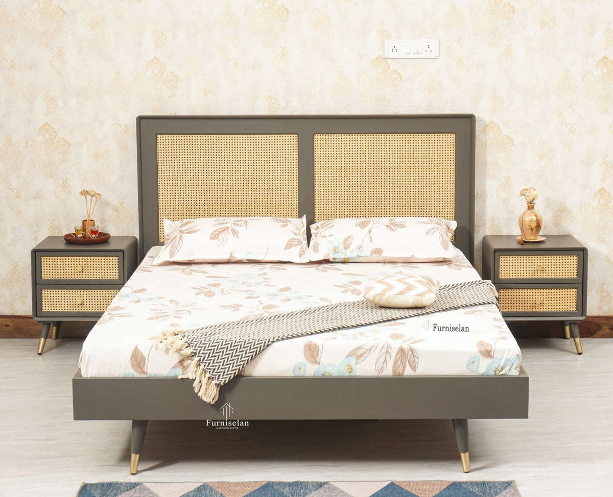 • Boston Solid Wood Rattan Cane King Size Bed Furniselan Grey-FinishFurniselan King Size Bed ₹ 38,999.00