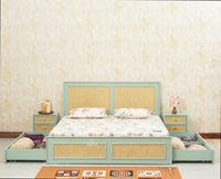 Generic Name: Boston Solid Wood Rattan Cane Queen Size Bed With Storage Drawers
