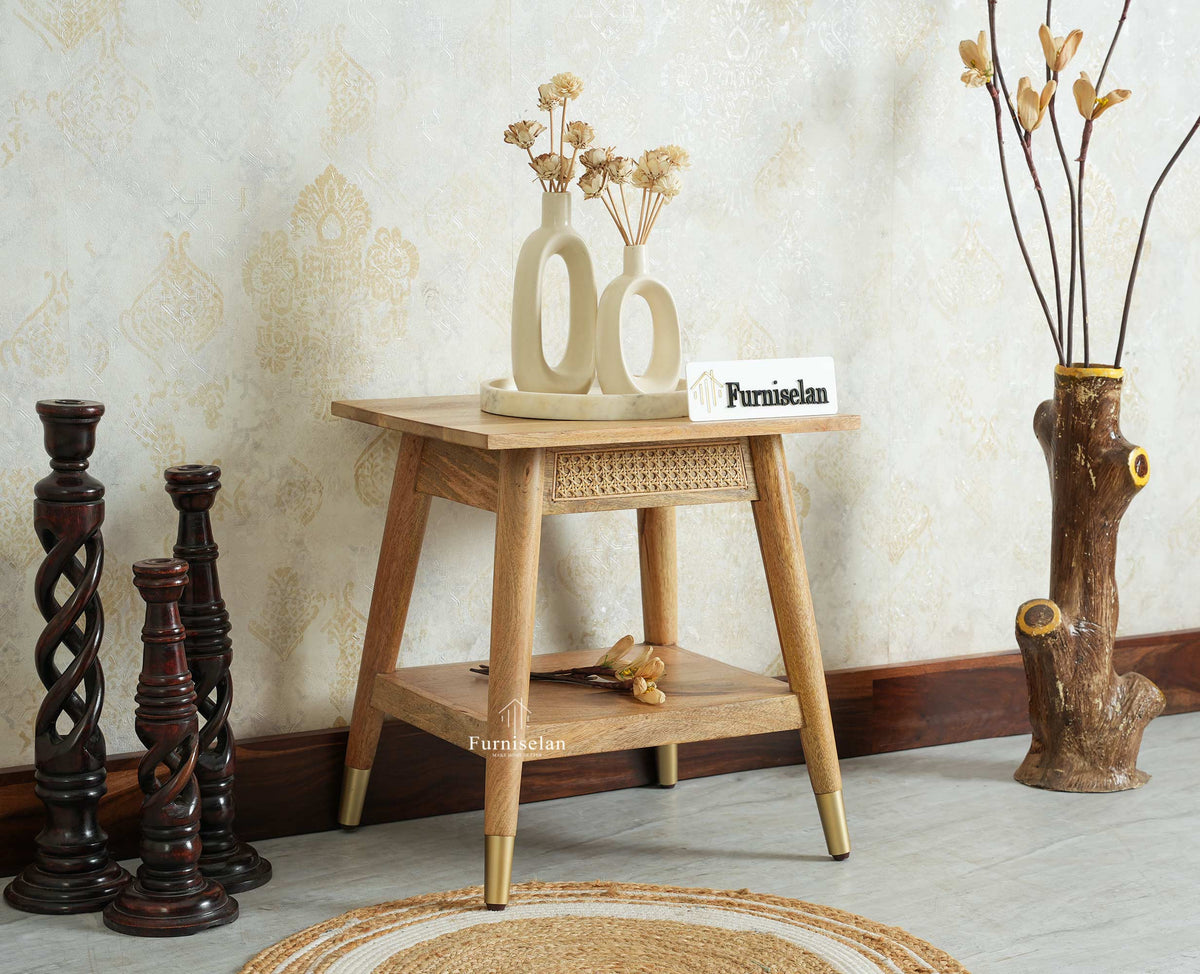 Boston Solid Wood Rattan Cane End Table is a perfect solid wood Bedside Table. Use of Mango Wood as primary material gives this Bedside Table a solid & sturdy look. Secondary material is used as Rattan Cane. We offer free country-wide shipping and free installation service. The wood used in the furniture is perfectly seasoned for optimum moisture content, to reduce the possibility of seasonal expansion or contraction of the products.