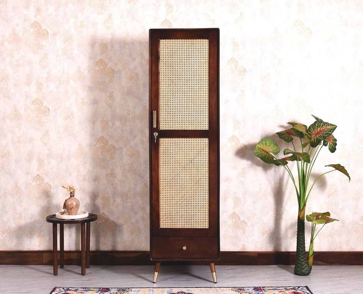 Boston Solid Wood Rattan Cane Single Door Wardrobe Codewiser Infotech