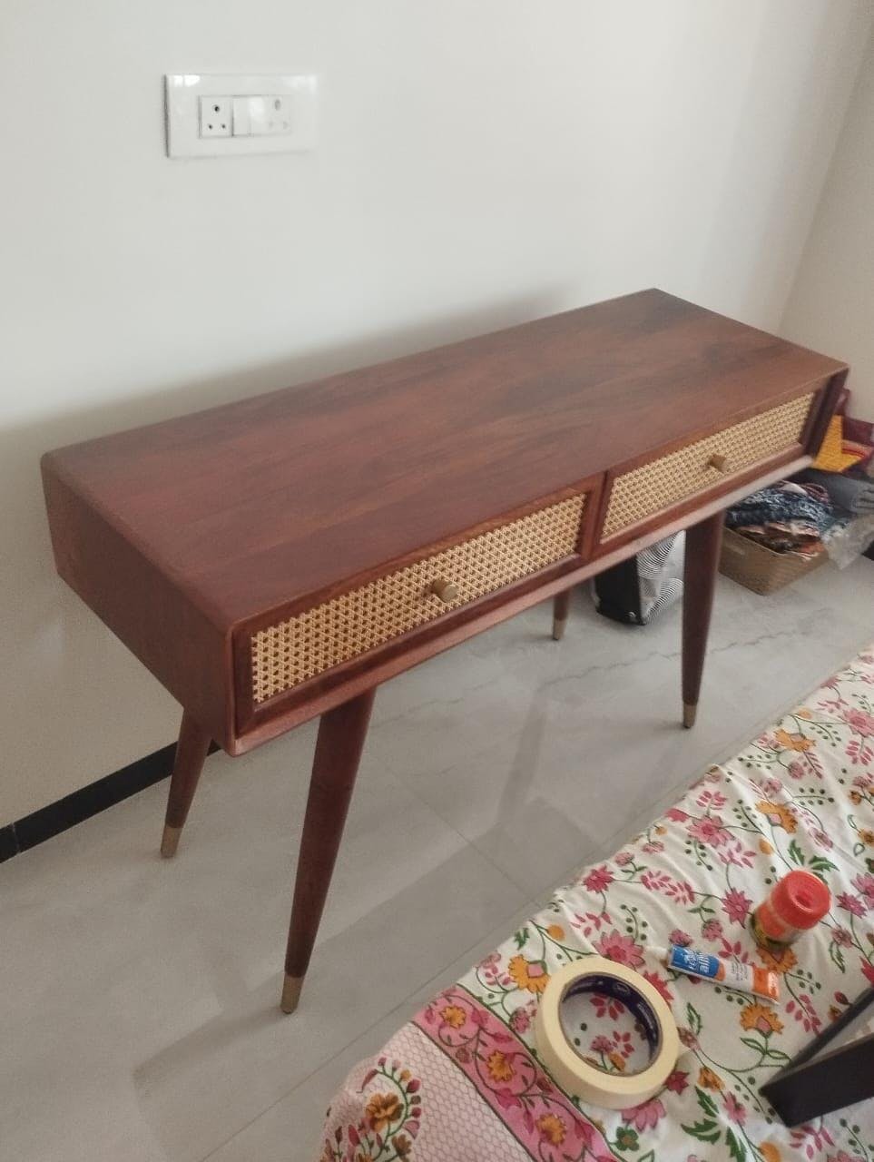Boston Solid Wood Rattan Cane Study Laptop Table with Two Drawer is a perfect solid wood Study Table. Use of Mango Wood as primary material gives this Study Table a solid & sturdy look. Secondary material is used as Rattan Cane/MDF is used in the Drawer Bottom & Backside. We offer free country-wide shipping and free installation service. The wood used in the furniture is perfectly seasoned for optimum moisture content, to reduce the possibility of seasonal expansion or contraction of the products.