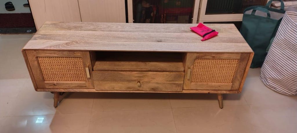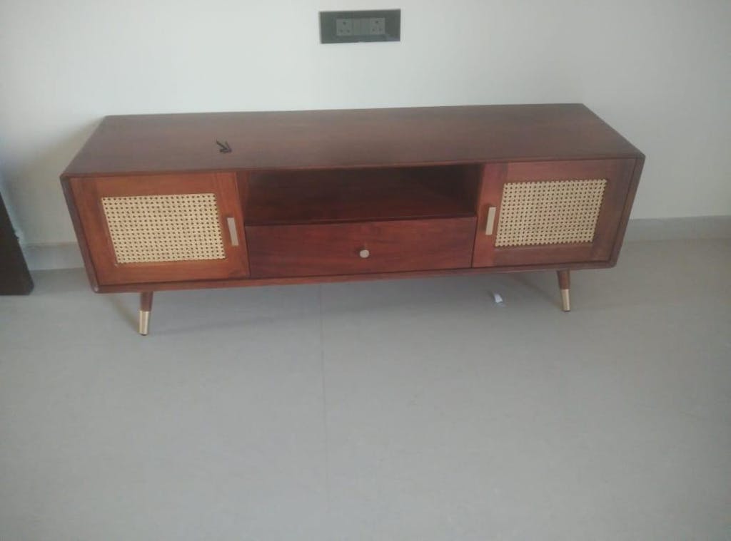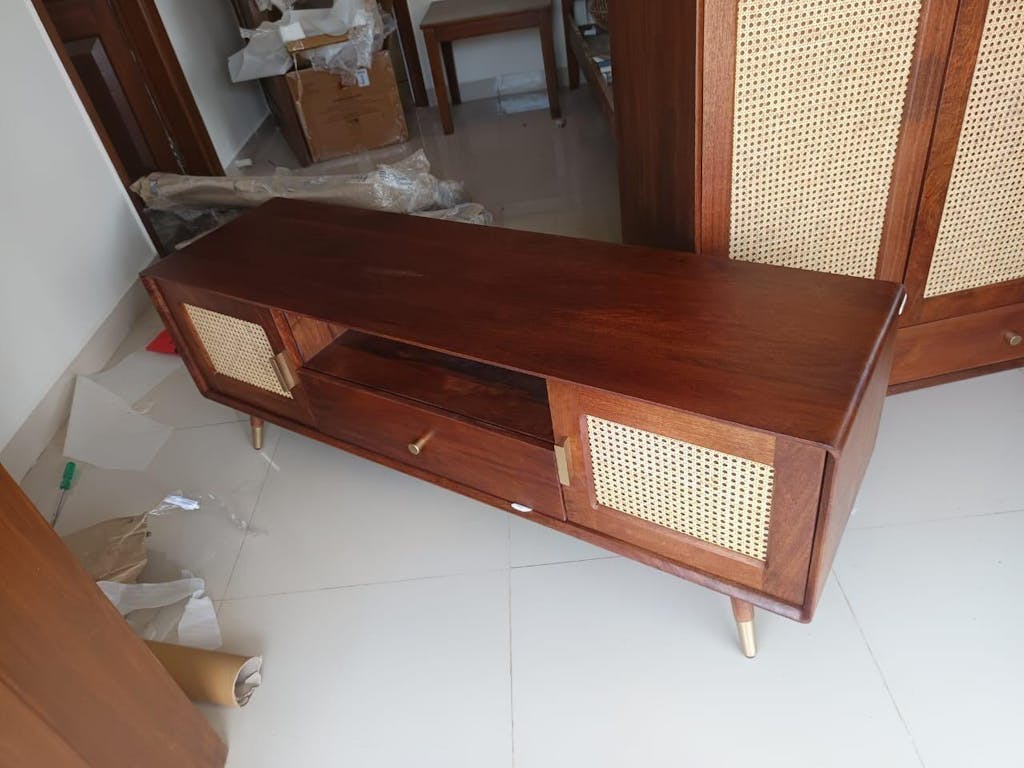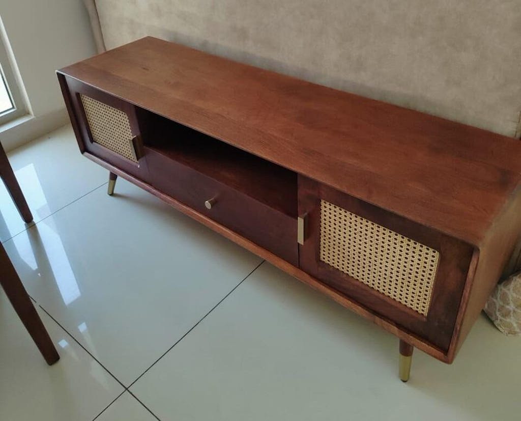 Boston Solid Wood Rattan Cane Tv Cabinet is a perfect solid wood Tv Cabinet. Use of Mango Wood as primary material gives this Tv Cabinet a solid & sturdy look. Secondary material is used as Rattan Cane/MDF is used in the Drawer Bottom & Backside. We offer free country-wide shipping and free installation service. The wood used in the furniture is perfectly seasoned for optimum moisture content, to reduce the possibility of seasonal expansion or contraction of the products.
