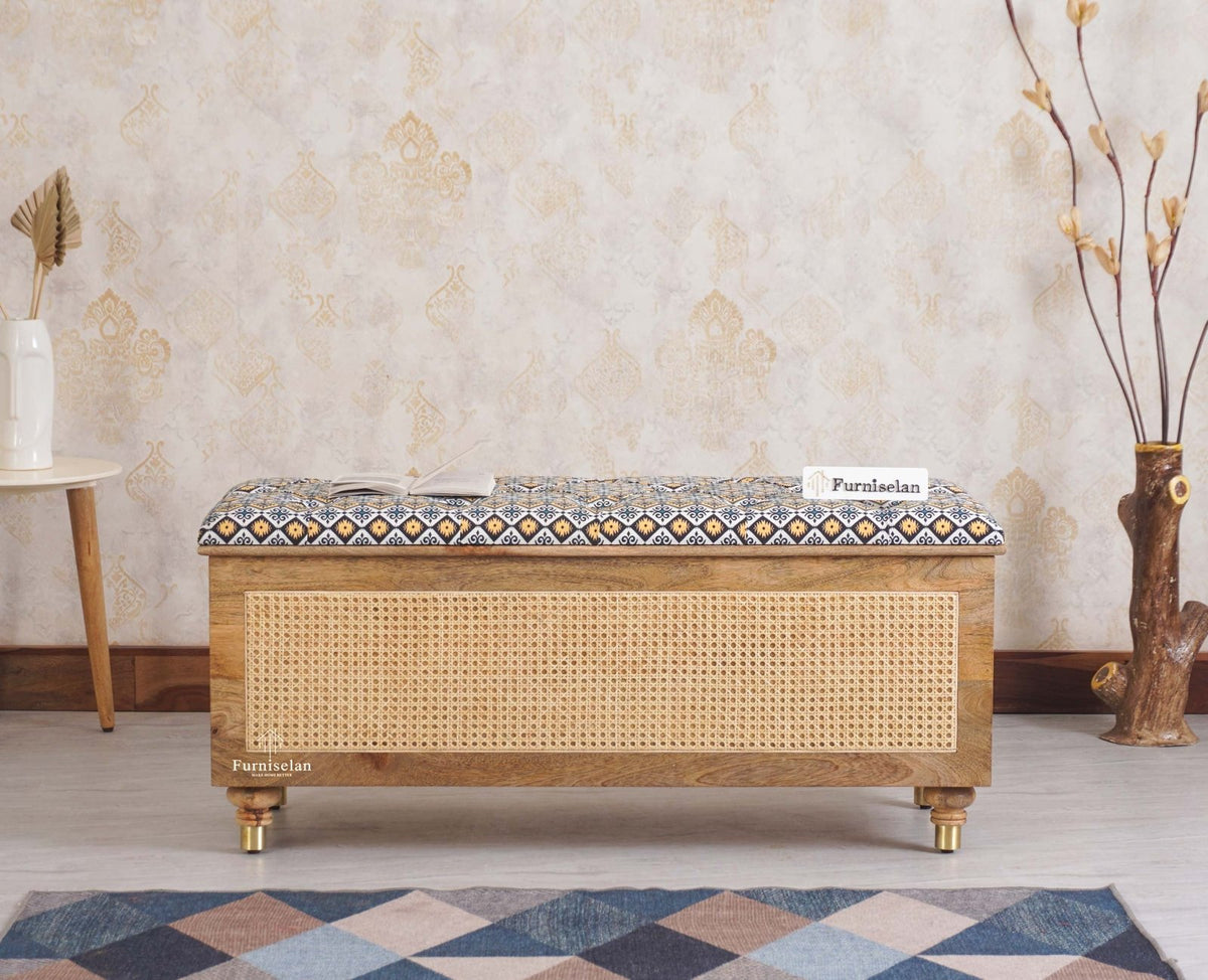 Boston Solid Wood Rattan Storage Trunk Box With Seating Cushion is a perfect solid wood Trunks & Cabinets. Use of Mango Wood as primary material gives this Trunks & Cabinets a solid & sturdy look. We offer free country-wide shipping and free installation service. The wood used in the furniture is perfectly seasoned for optimum moisture content, to reduce the possibility of seasonal expansion or contraction of the products.
