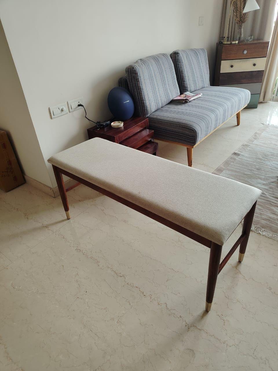 In accordance with the different screen settings and resolutions, there might be a minute difference in fabric colour and wood finish between the website images and actual product.