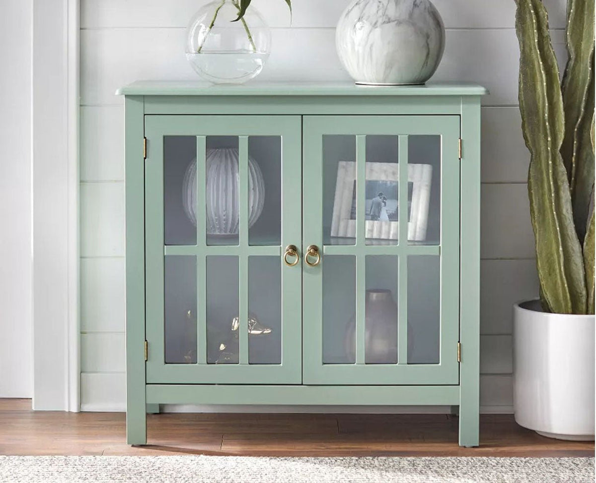 Material: Primary - Mango Wood, Secondary - Glass used in doors and MDF used backside