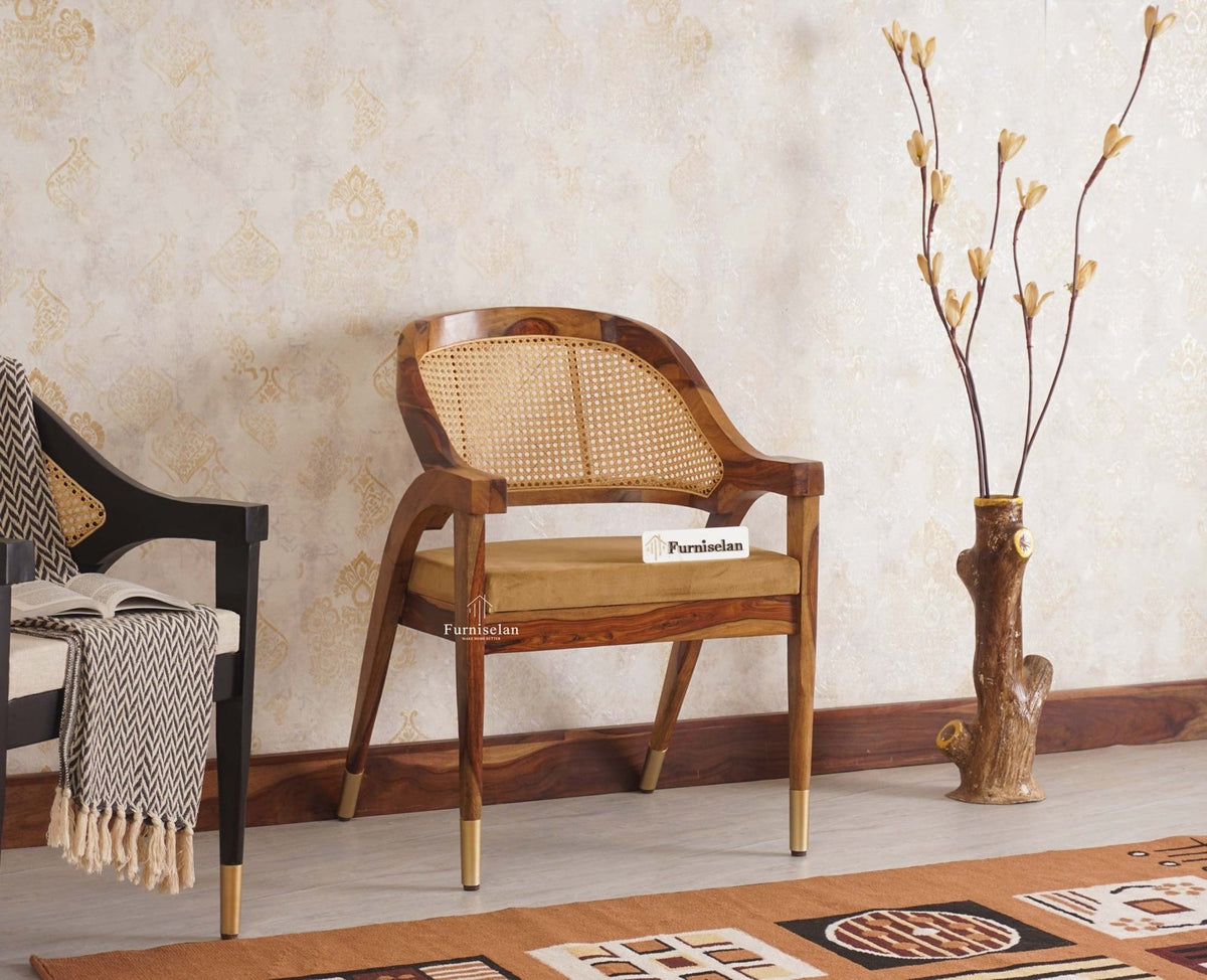 • Bristol Sheesham wood Rattan Arm Chair - Dining Chair - Furniselan  - Maple-FinishFurniselan Arm Chair ₹ 8,999.00