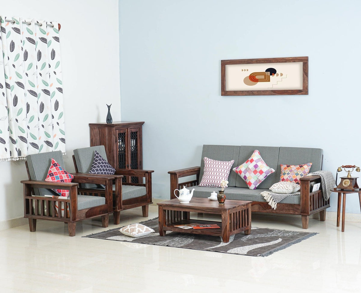 Cuttack Sheesham Wood 5 Seater Sofa With Coffee Table-3+1+1+Table - (Grey Finish)