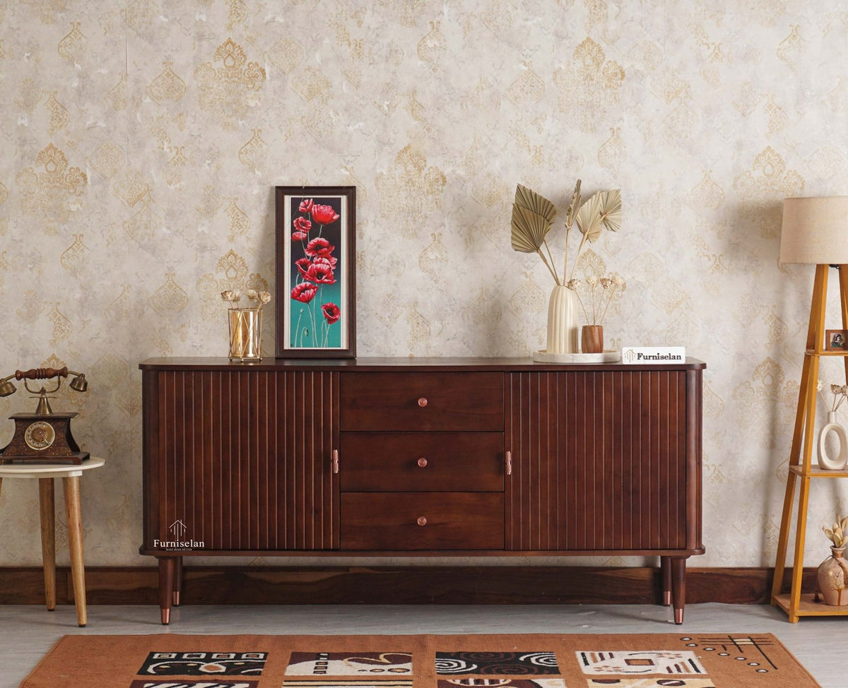 Storage: Eiffel Solid Wood Sideboard Cabinet Two Doors and Three Drawers comes with Two Door & Three Drawer storage option.