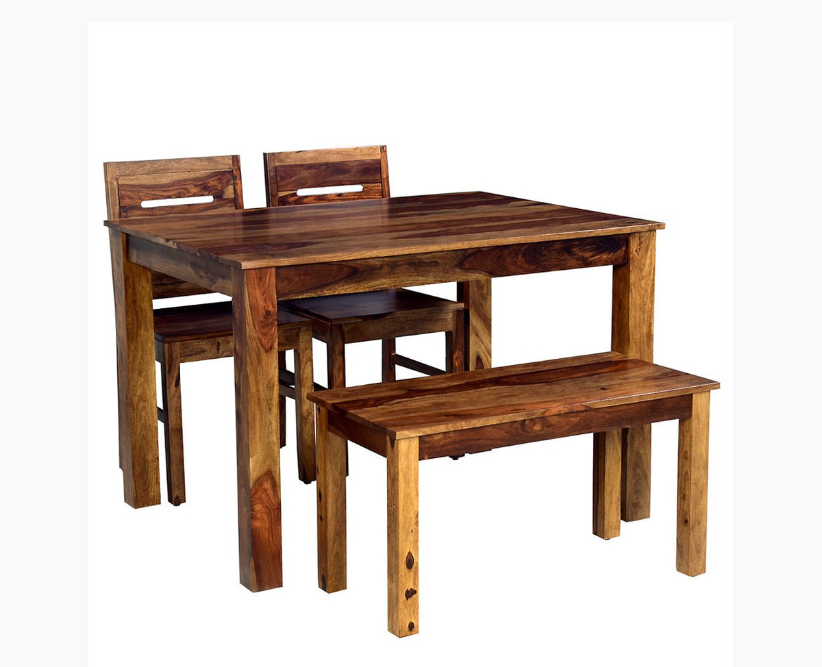 Generic Name: Jaipur Sheesham Wood 4 Seater Dining Table Set with 2 Chair & Bench For Dining Room