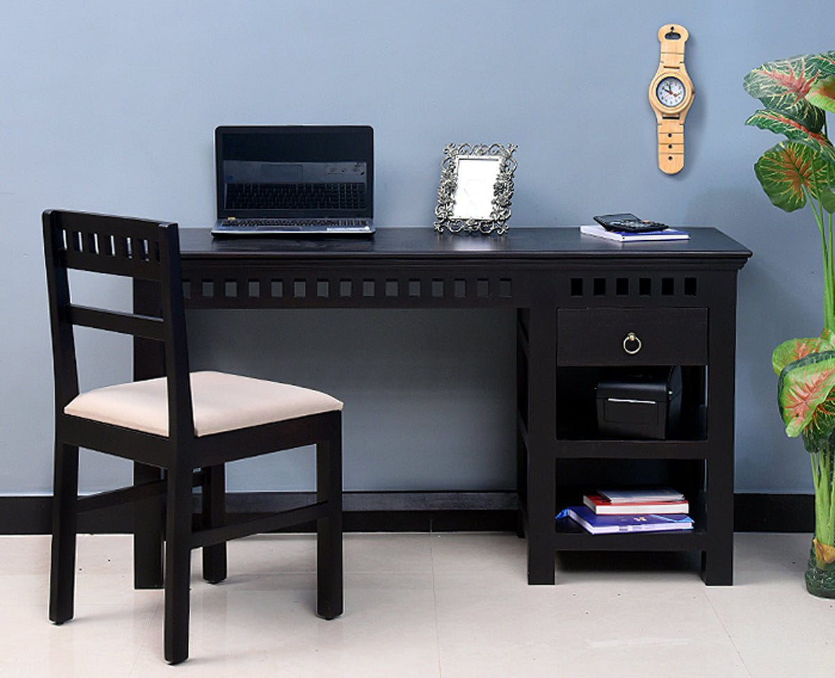 Expertly crafted Cairo Solid Wood Writing Study Table provides a sturdy and stylish workspace for efficient studying or work. Includes a convenient drawer and matching chair for added comfort and...
