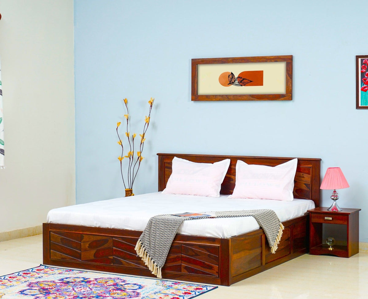 Hong Kong Solid Wood Queen Size Bed with Box Storage is a perfect solid wood . Use of Sheesham Wood as primary material gives this a solid & sturdy look. We offer free country-wide shipping and free installation service. The wood used in the furniture is perfectly seasoned for optimum moisture content, to reduce the possibility of seasonal expansion or contraction of the products.