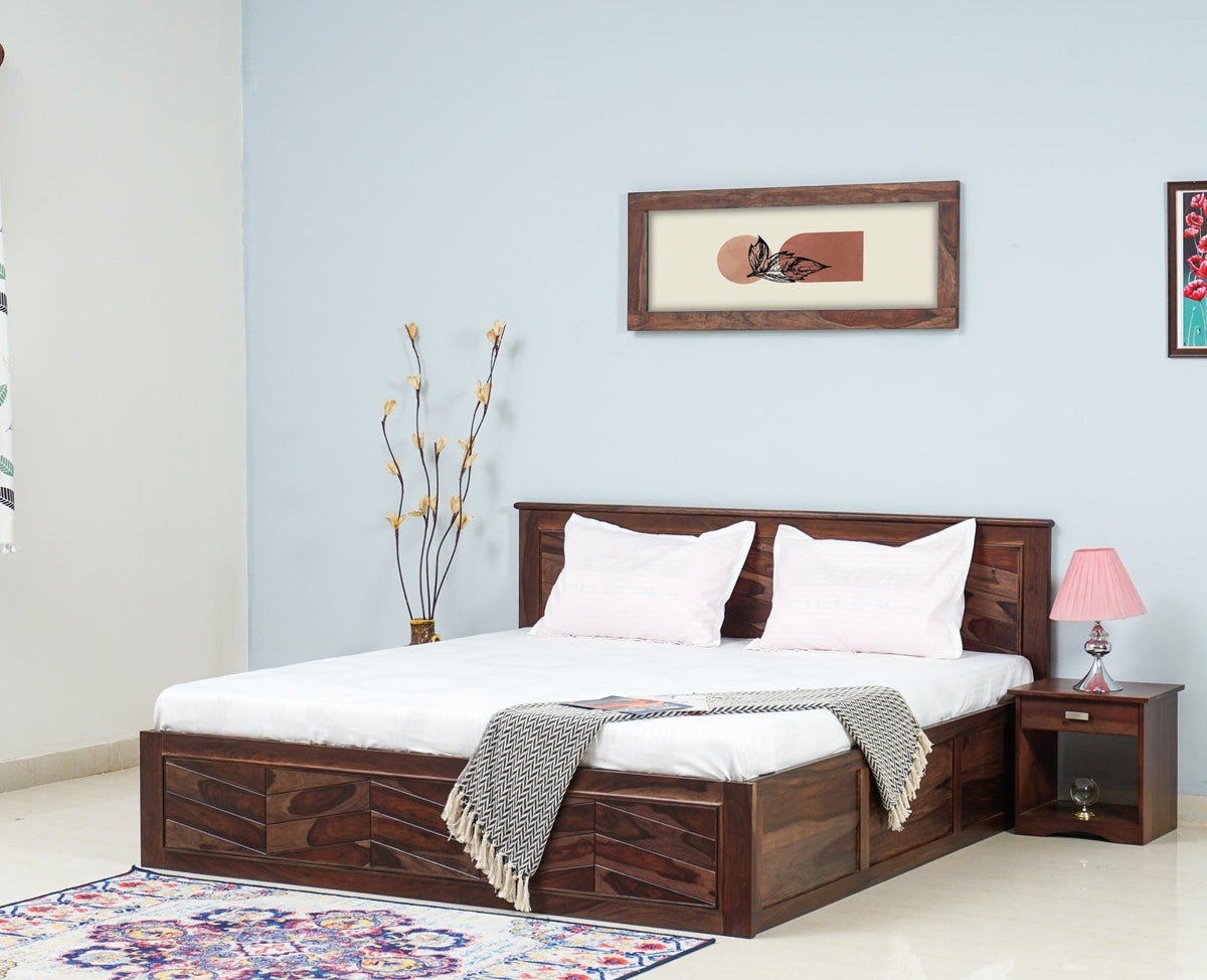 Hong Kong Solid Wood Queen Size Bed with Box Storage is a perfect solid wood . Use of Sheesham Wood as primary material gives this a solid & sturdy look. We offer free country-wide shipping and free installation service. The wood used in the furniture is perfectly seasoned for optimum moisture content, to reduce the possibility of seasonal expansion or contraction of the products.