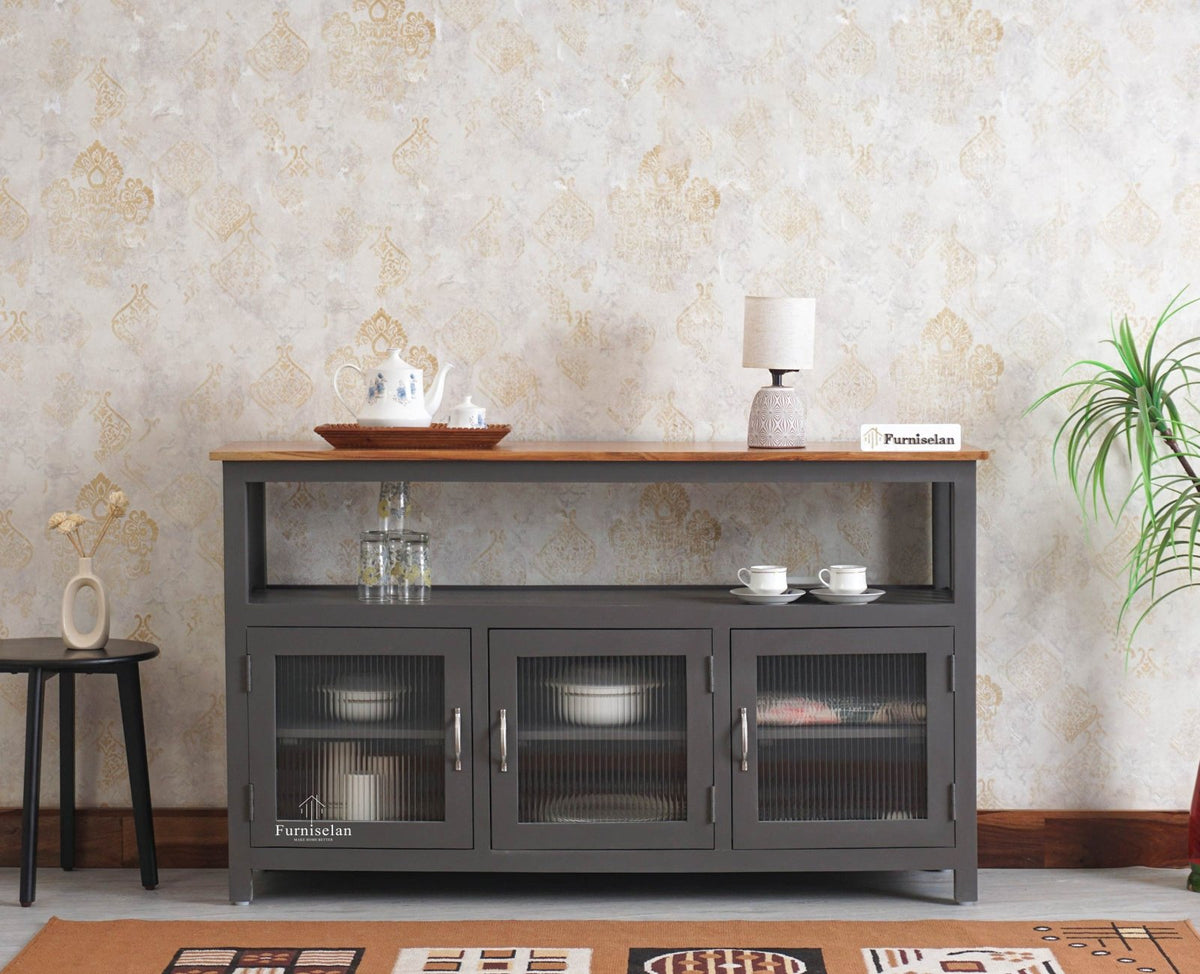 Kozhikode Sheesham Wood Three Door Kitchen Crockery Cabinet - (Slate Grey)