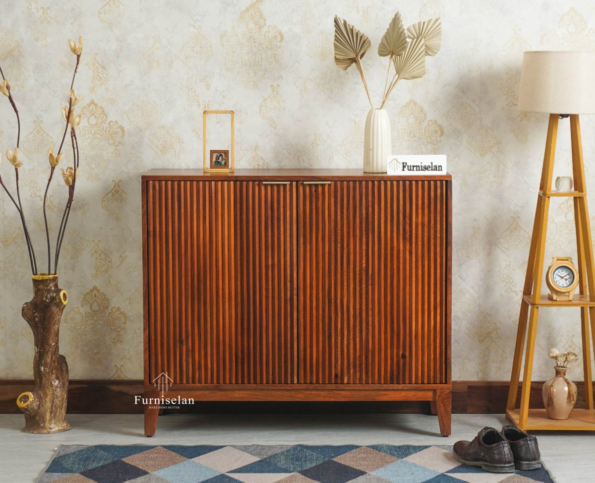 • Sweden Wooden Two Doors Shoe Rack - Furniselan - Teak-FinishFurniselan Shoe Rack ₹ 21,599.00