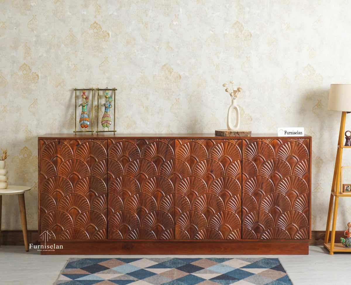 Storage: Mayur Wooden Large Sideboard Cabinet-Four Door comes with 4 Doors storage option.
