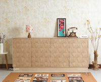 Mayur Wooden Large Sideboard Cabinet-Four Door Crafted from premium solid wood, this four-door sideboard combines substantial storage with refined aesthetics. The expansive design accommodates dinnerware, glassware, and table linens with...