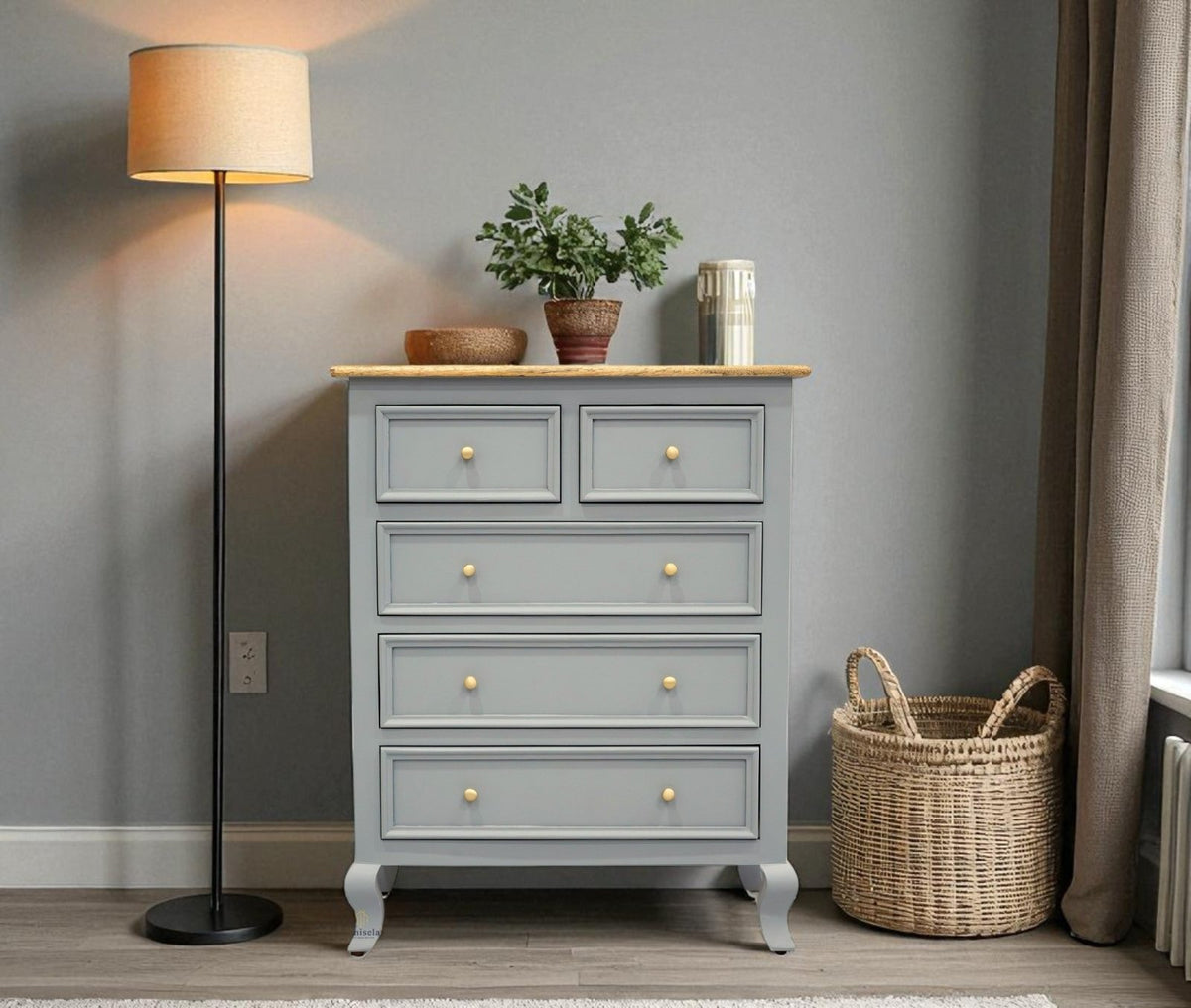 Mumbai Solid Wood Chest of Drawer Storage Five Drawers - (Cool Grey)