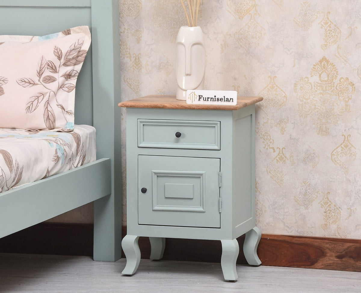 Mumbai Solid Wood One Door One Drawer Bedside Table-Left Side Door - (Silt Green)