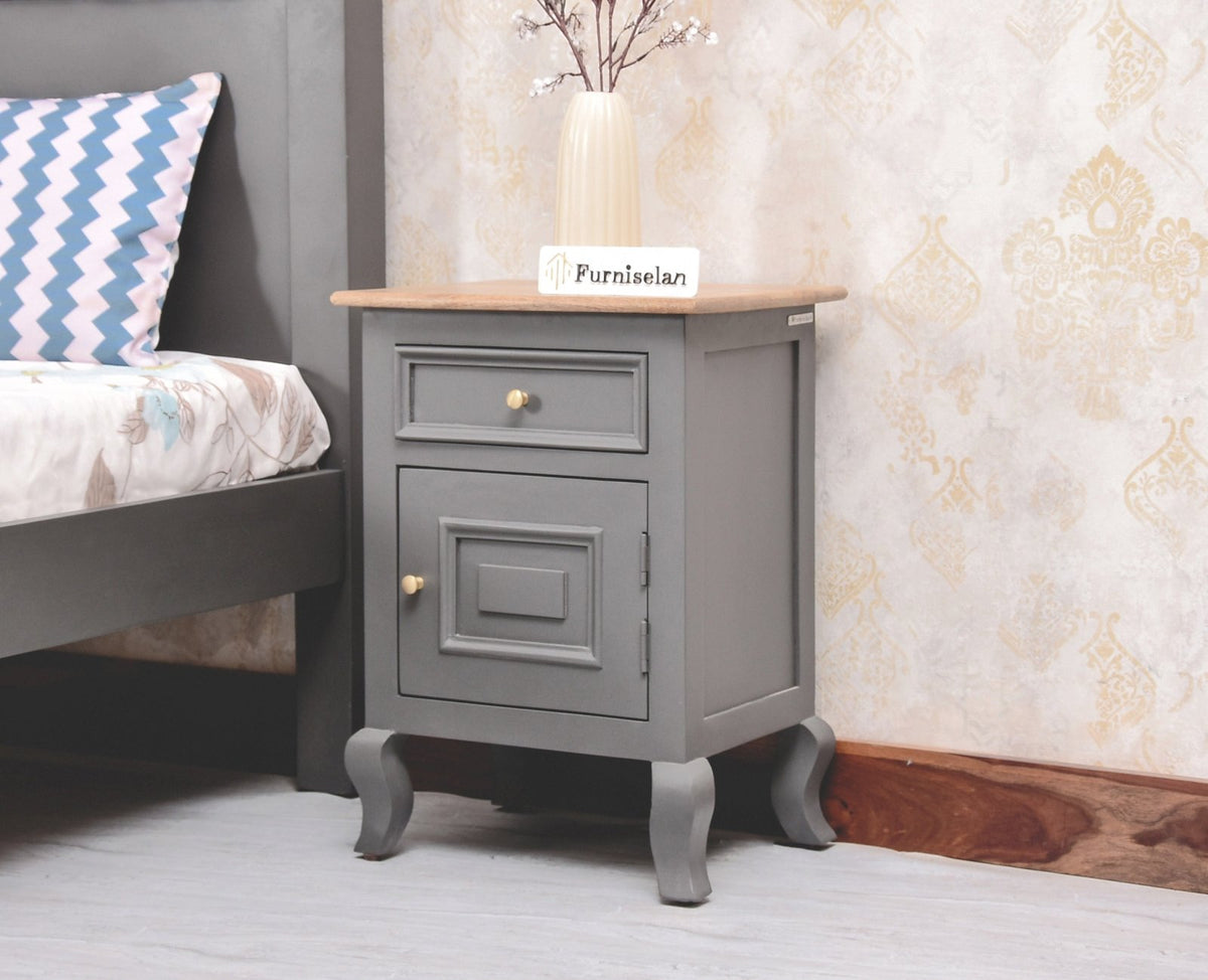 Mumbai Solid Wood One Door One Drawer Bedside Table-Left Side Door - (Cool Grey)