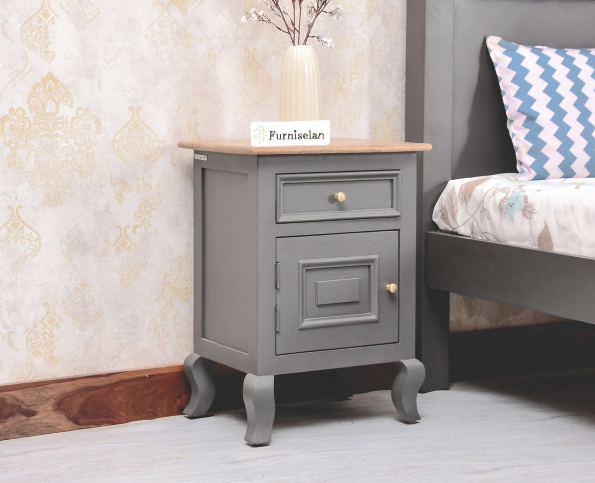 Mumbai Solid Wood One Door One Drawer Bedside Table-Right Side Door - (Cool Grey)