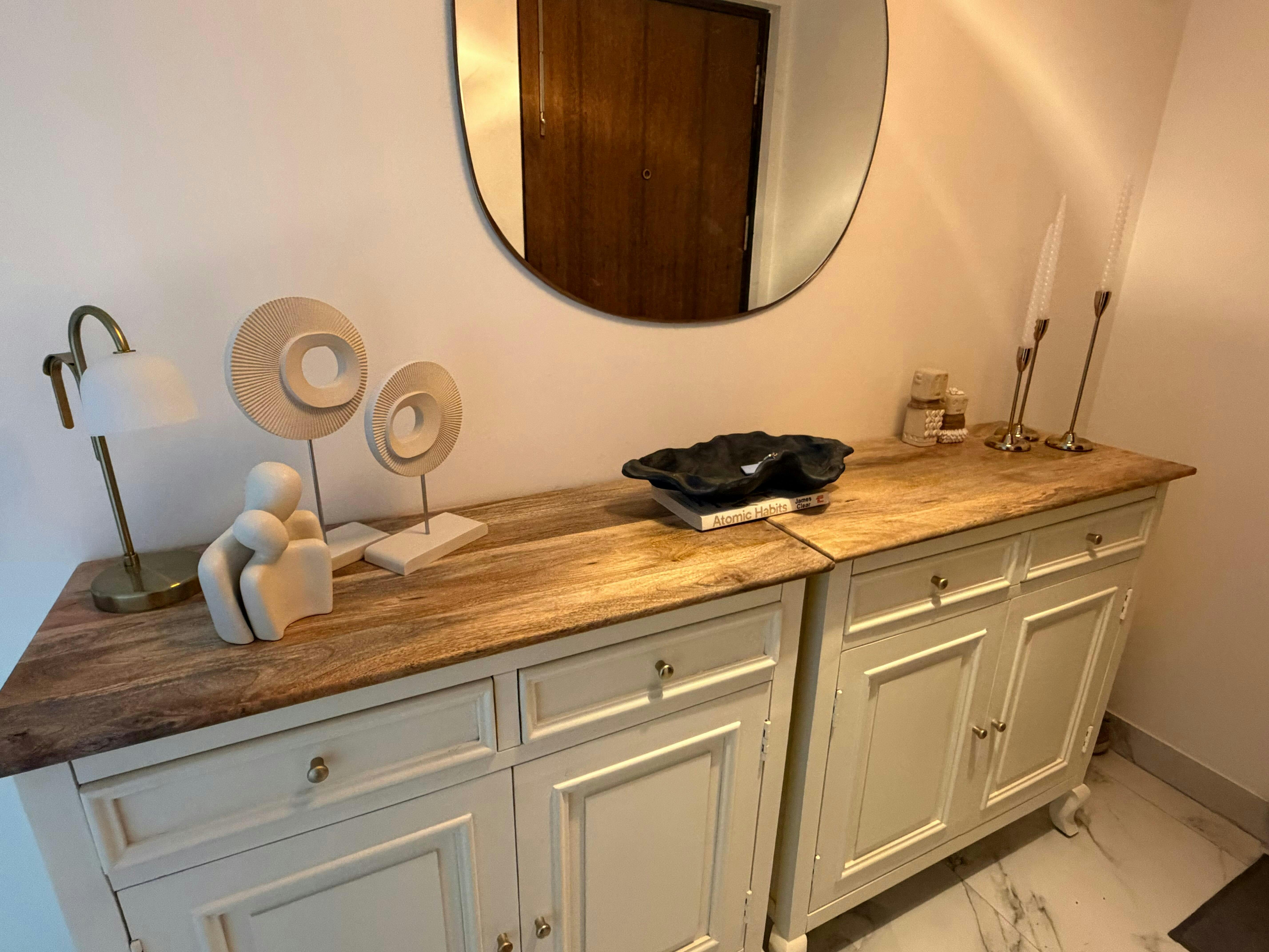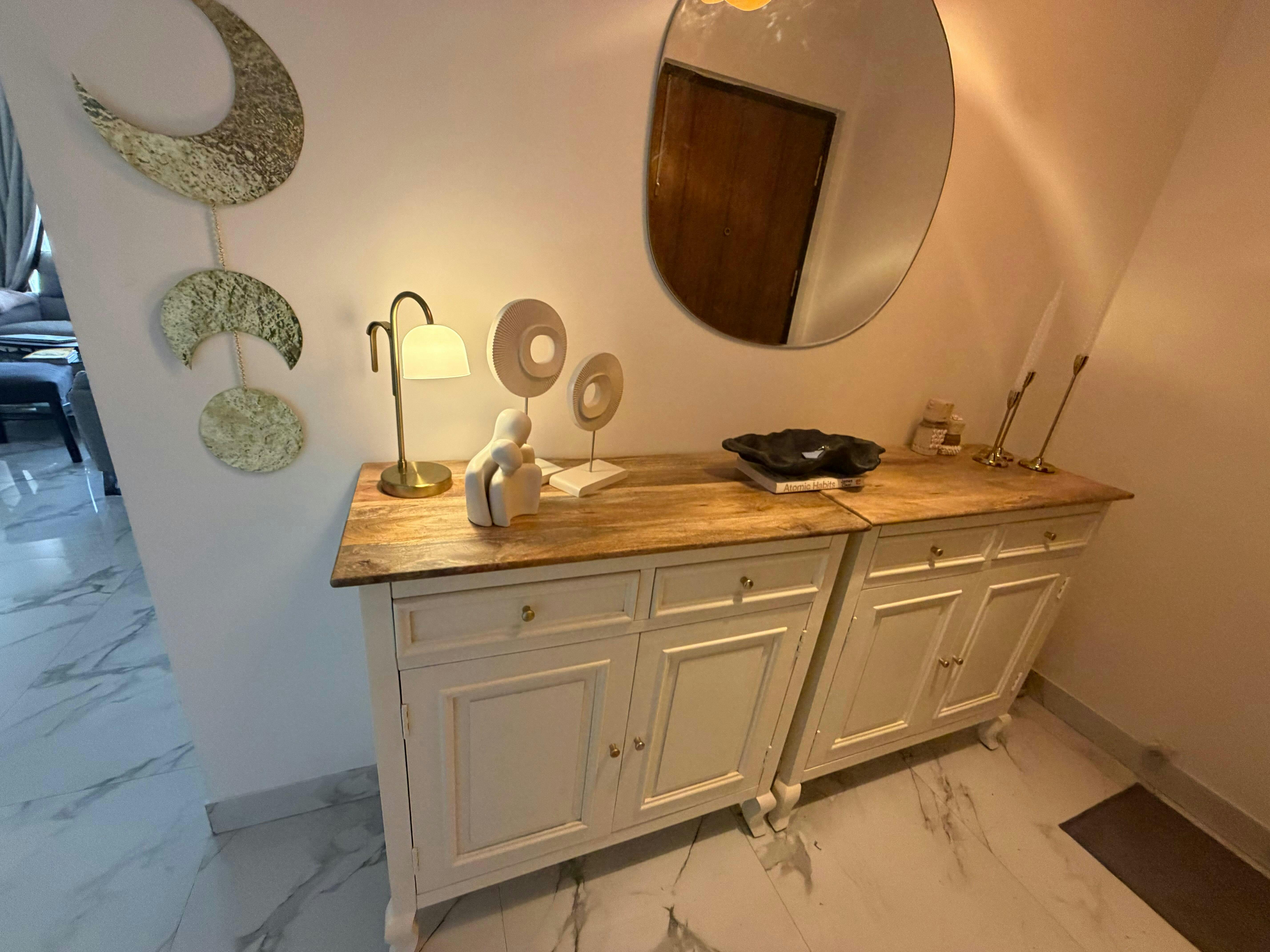 Mumbai Solid Wood Shoe Rack Cabinet Two Doors & Drawers is a perfect solid wood Sideboard. Use of Mango Wood as primary material gives this Sideboard a solid & sturdy look. Secondary material is used as MDF is used in the Backside & Drawer Bottom. We offer free country-wide shipping and free installation service. The wood used in the furniture is perfectly seasoned for optimum moisture content, to reduce the possibility of seasonal expansion or contraction of the products.