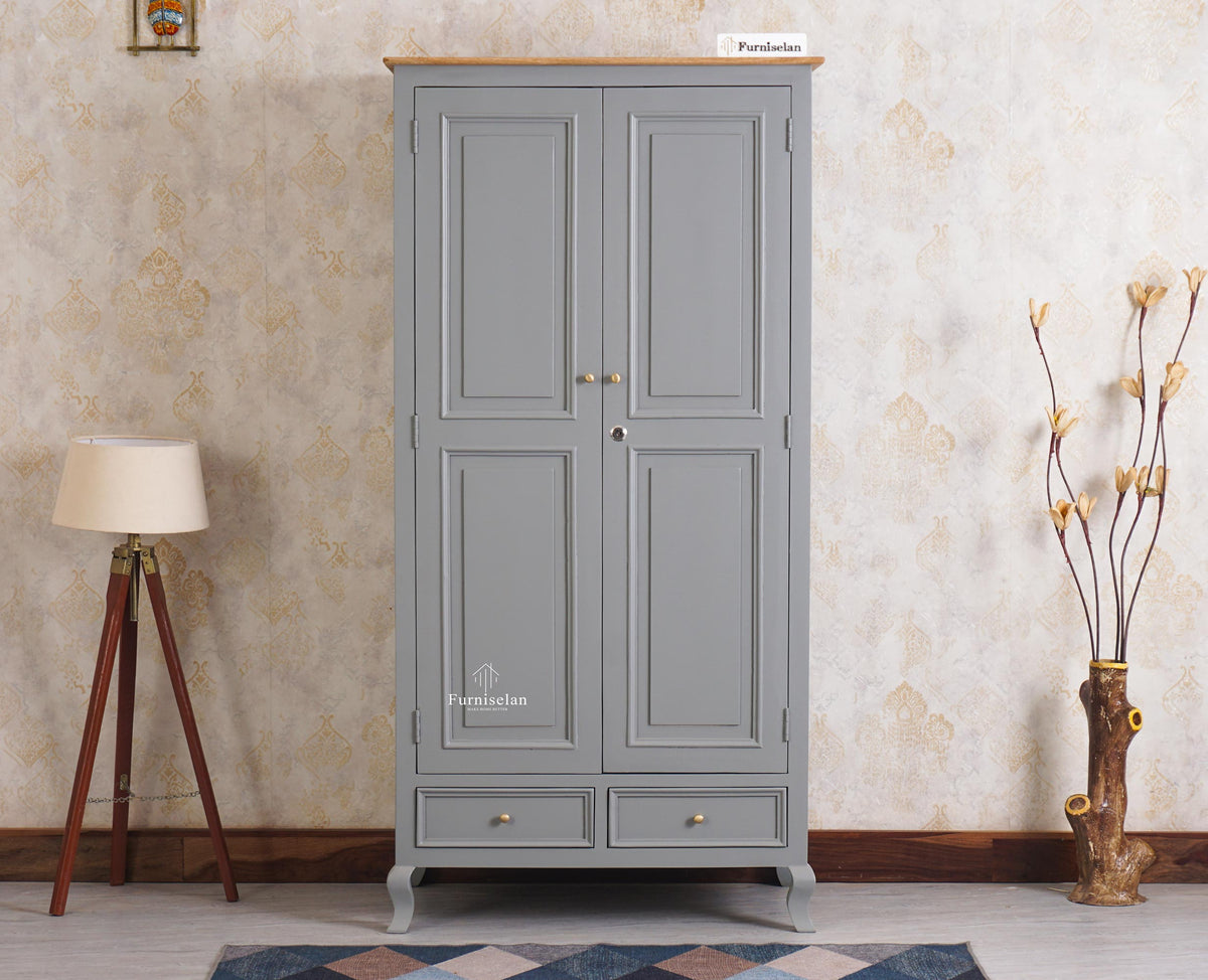 Mumbai Solid Wood Two Door Wardrobe - (Cool Grey)