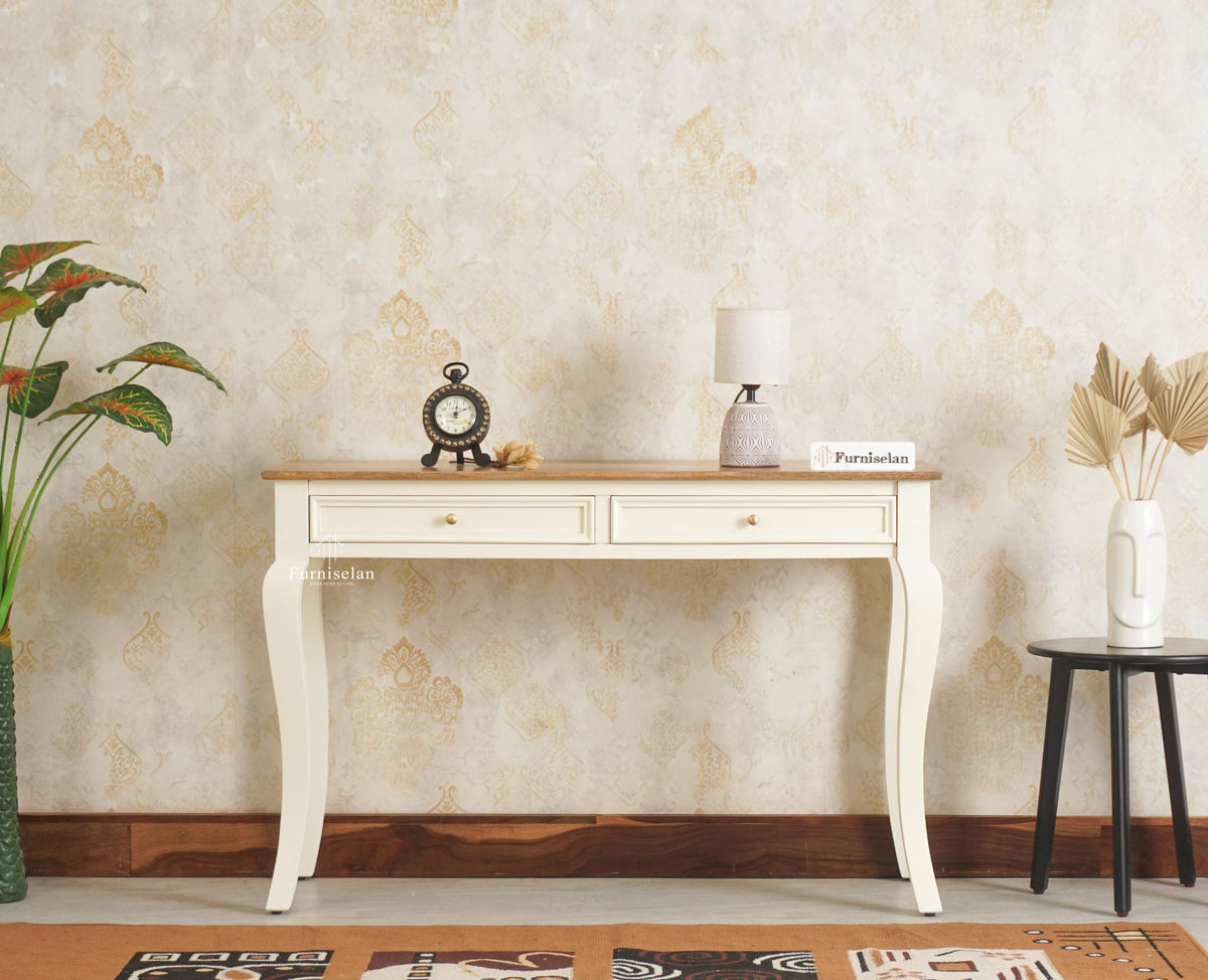 • Alexandria Solid Wood Console Table-Two Drawer Furniselan - Frosty WhiteFurniselan Console Table ₹ 13,999.00