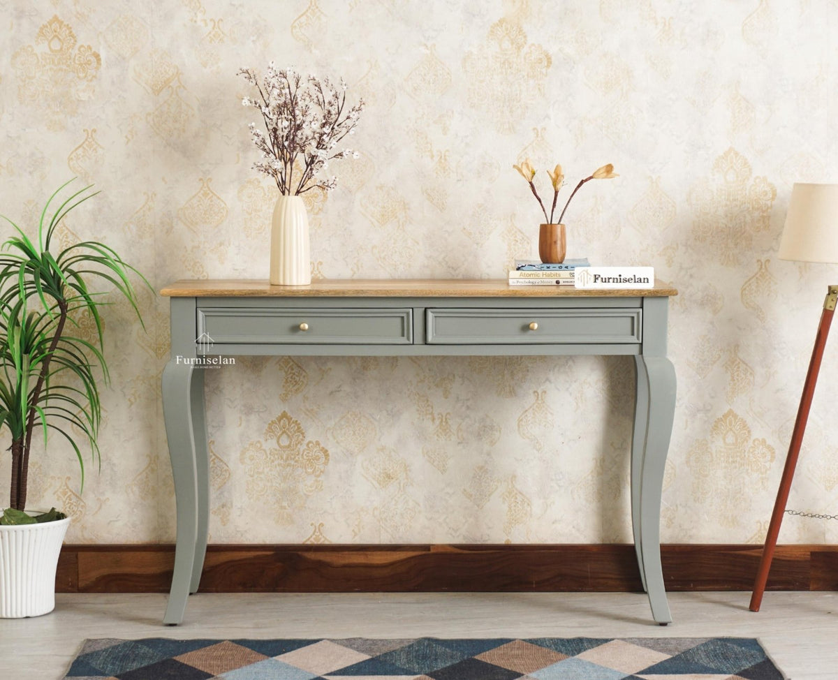 Mumbai Solid Wood Two Drawer Console Table - (Cool Grey)