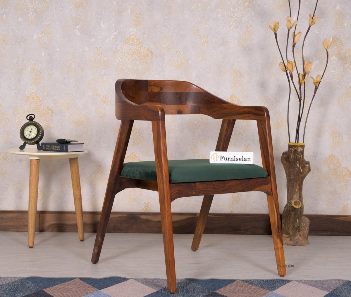 Muse Sheesham Wood Arm Chair is a perfect solid wood Dining Chair. Use of Sheesham Wood as primary material gives this Dining Chair a solid & sturdy look. Secondary material is used as fabric cushion. We offer free country-wide shipping and free installation service. The wood used in the furniture is perfectly seasoned for optimum moisture content, to reduce the possibility of seasonal expansion or contraction of the products.