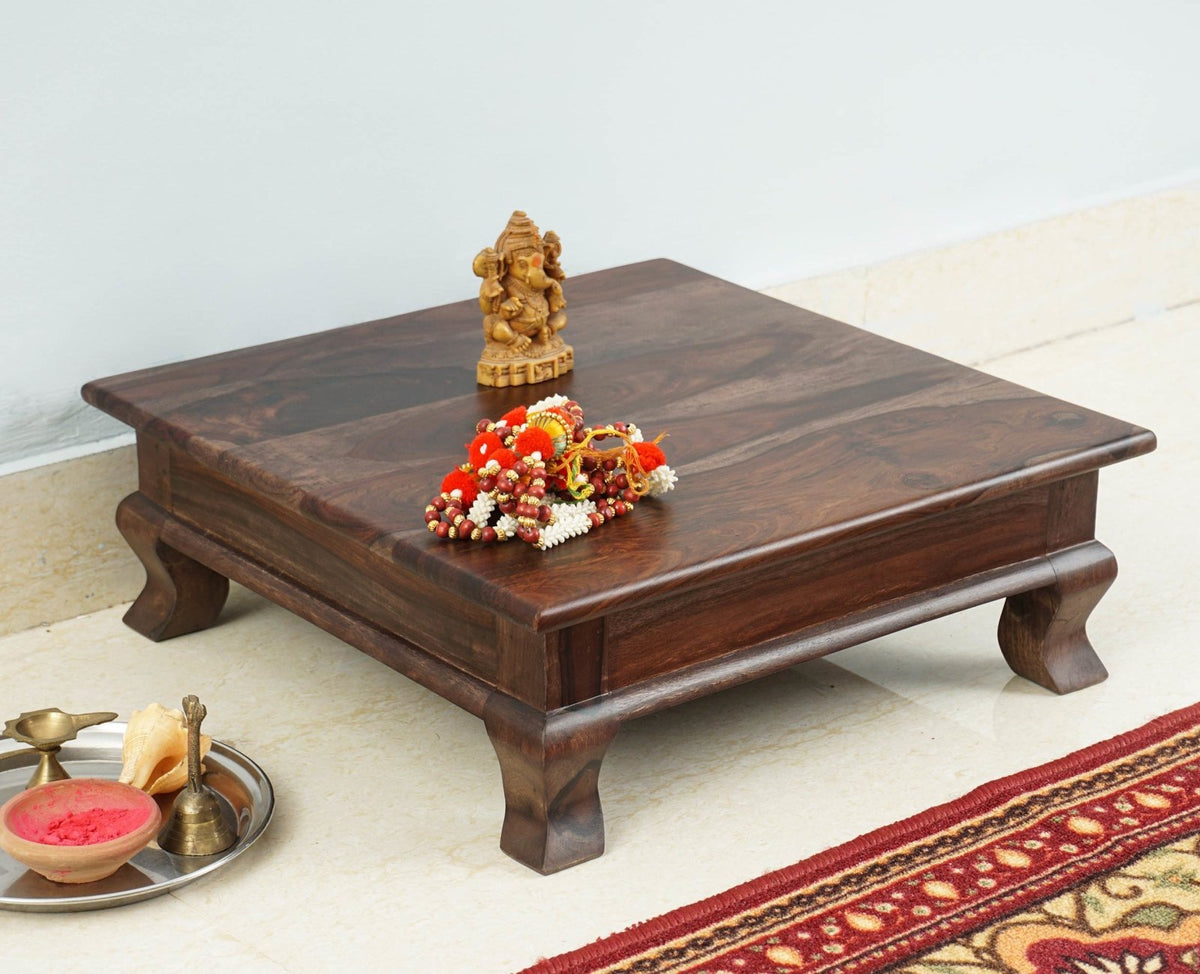Navratri Wooden Pooja Chowki is a perfect solid wood . Use of Sheesham Wood as primary material gives this a solid & sturdy look. We offer free country-wide shipping and free installation service. The wood used in the furniture is perfectly seasoned for optimum moisture content, to reduce the possibility of seasonal expansion or contraction of the products.