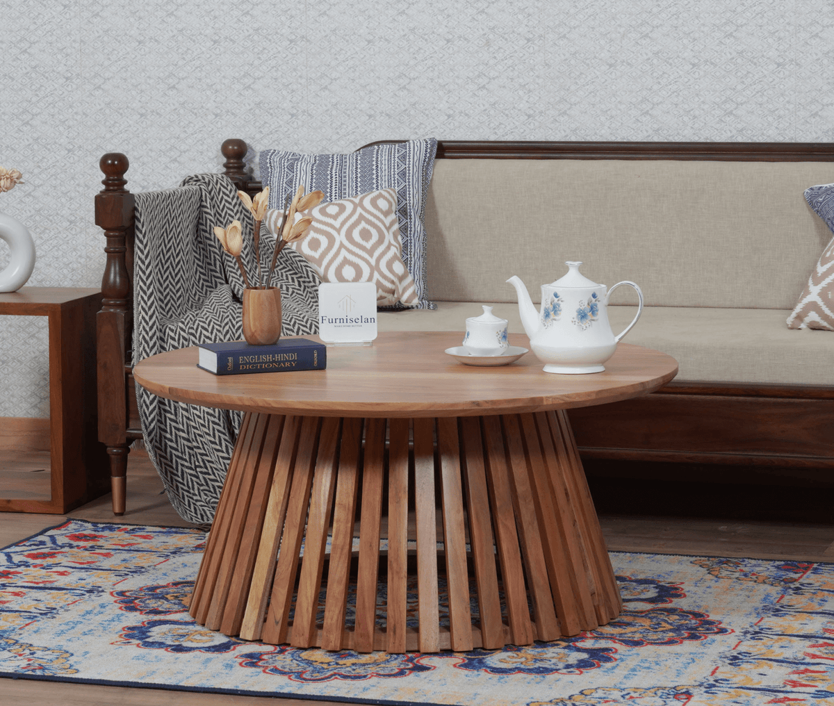Buy Online Orbit Solid Wood Round Coffee Table Codewiser Infotech