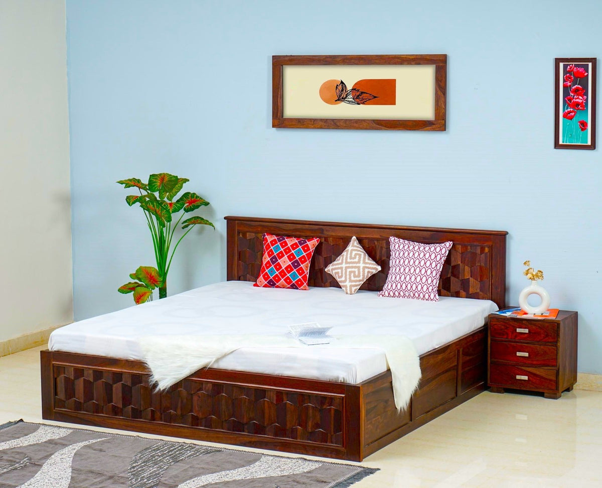 Puebla Solid Wood Queen Size Bed with Box Storage Codewiser Infotech