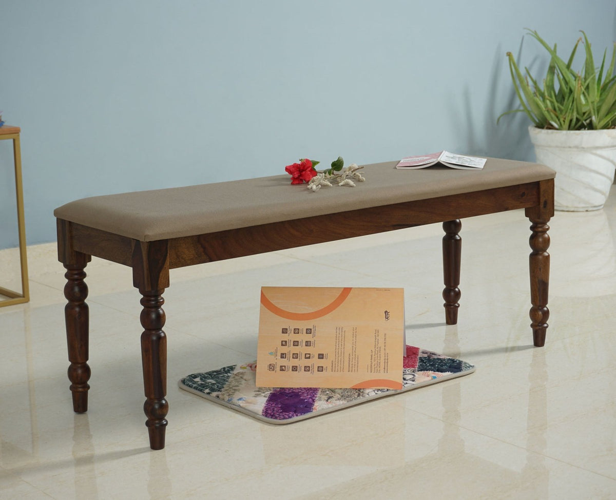 Madurai Sheesham Wood 3 Seater Dining Bench for Living Room is a perfect solid wood Bench. Use of Sheesham Wood as primary material gives this Bench a solid & sturdy look. Secondary material is used as Foam & Fabric-used at Seat. We offer free country-wide shipping and free installation service. The wood used in the furniture is perfectly seasoned for optimum moisture content, to reduce the possibility of seasonal expansion or contraction of the products.